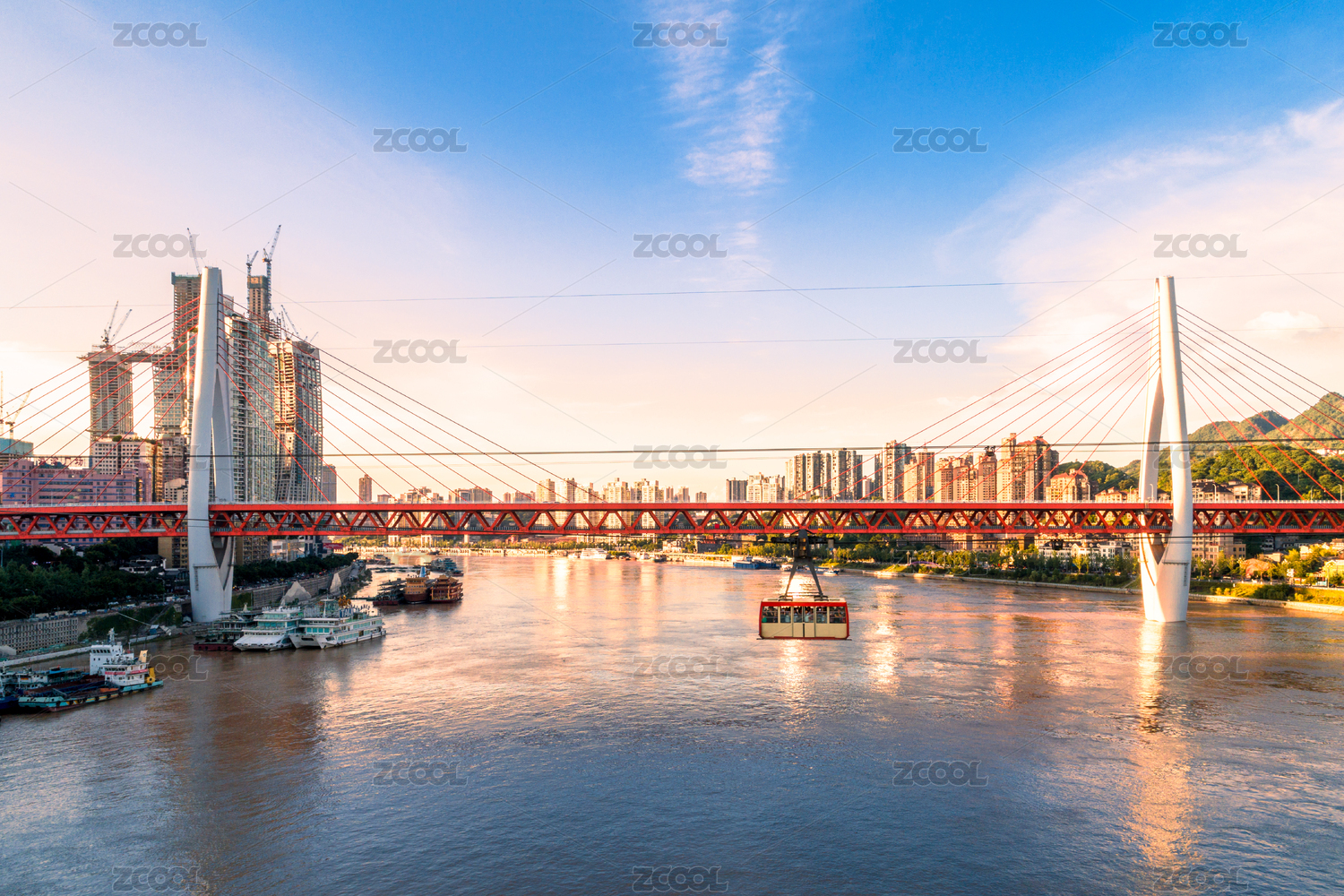 中國重慶長江索道和東水門大橋
