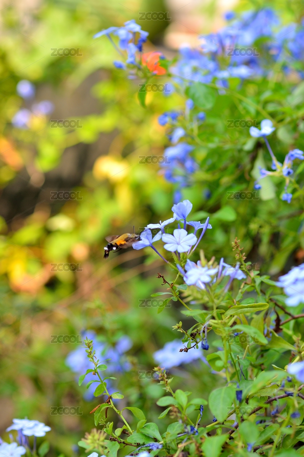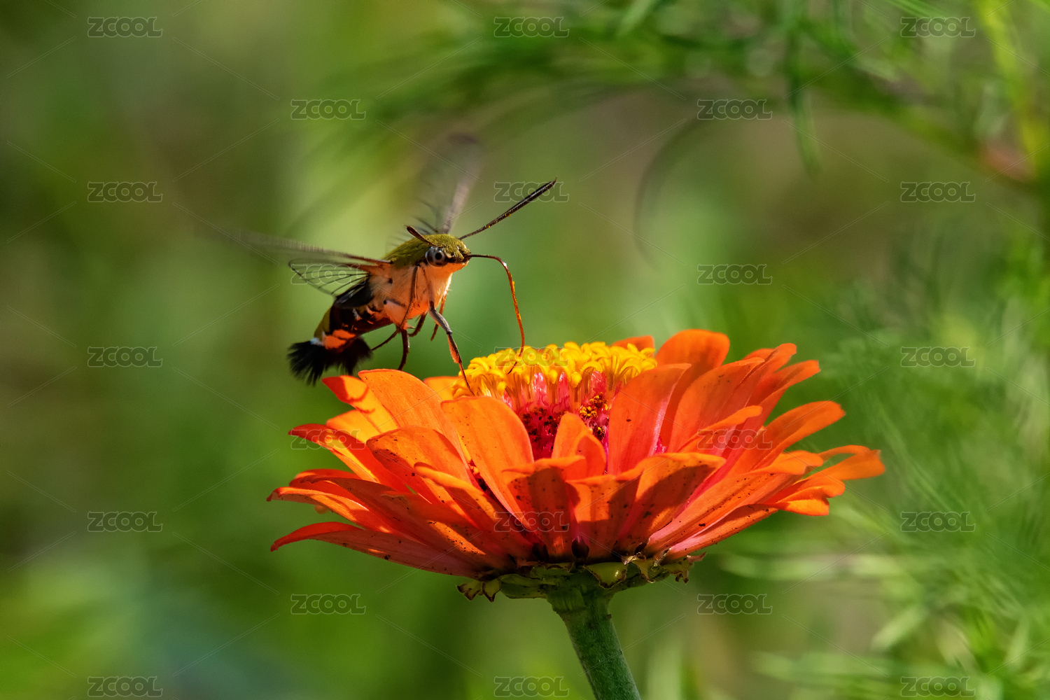 中國(guó)上海世紀(jì)公園的蜂鳥(niǎo)鷹蛾與百日菊