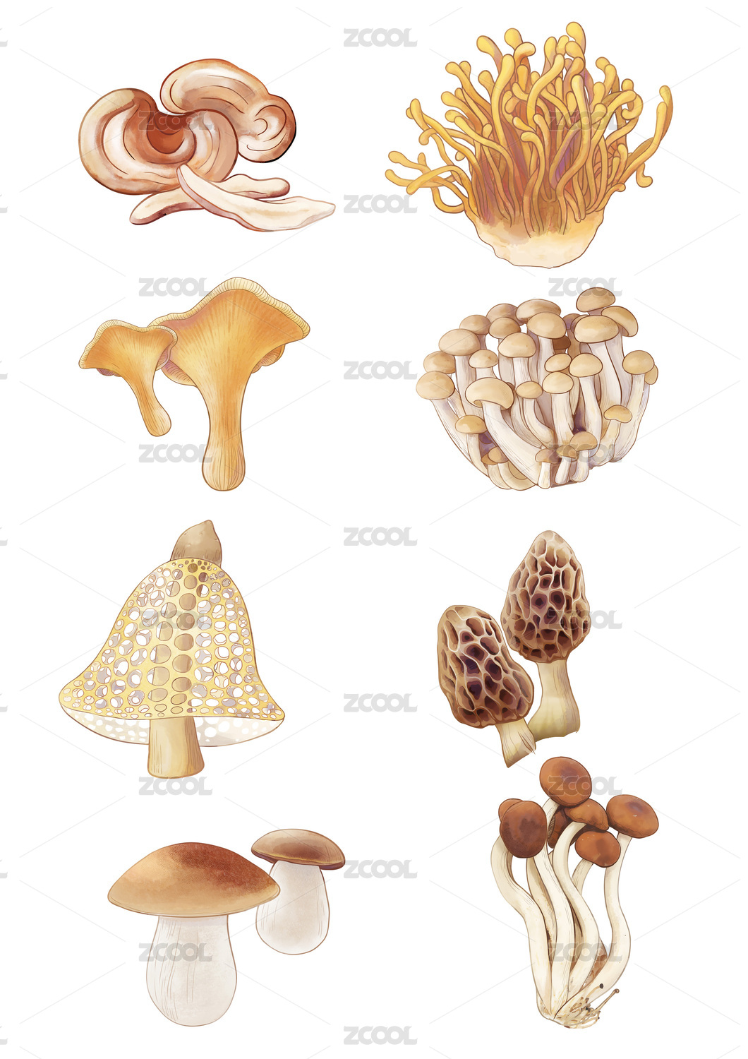 水彩手繪包裝插畫(huà)食物蘑菇菌菇植物圖鑒