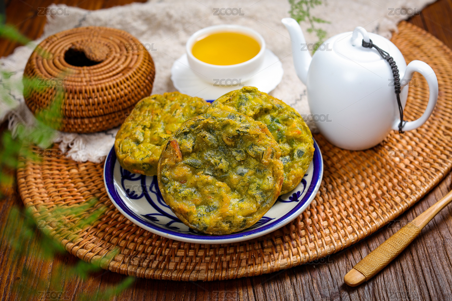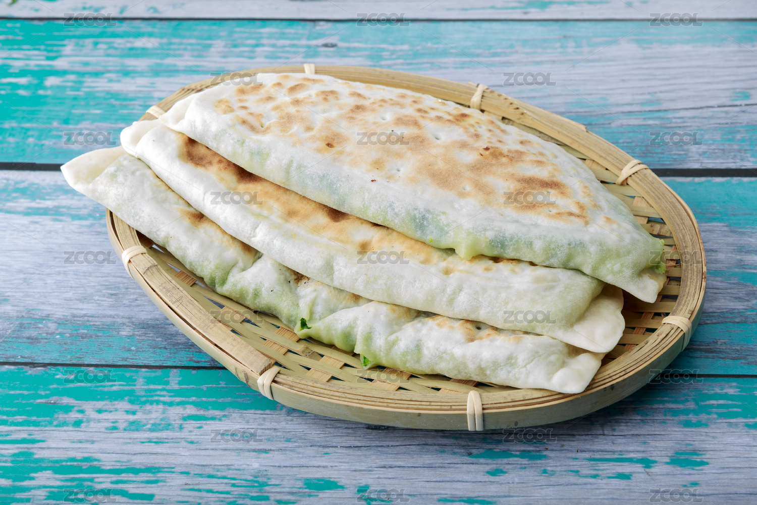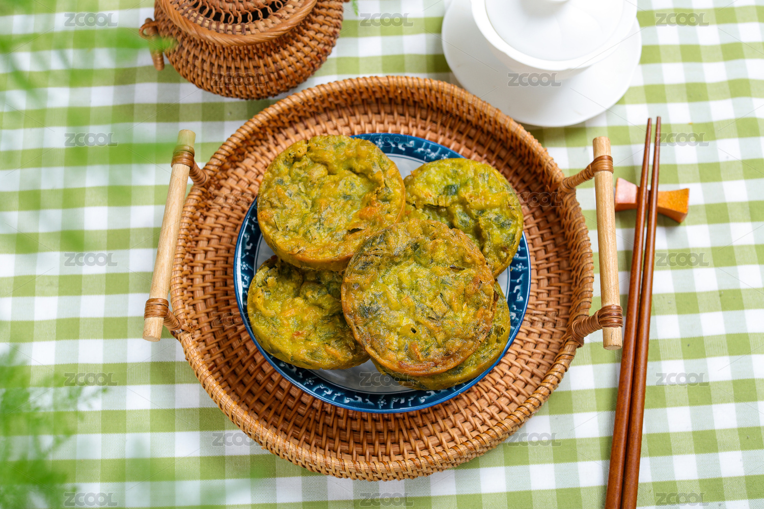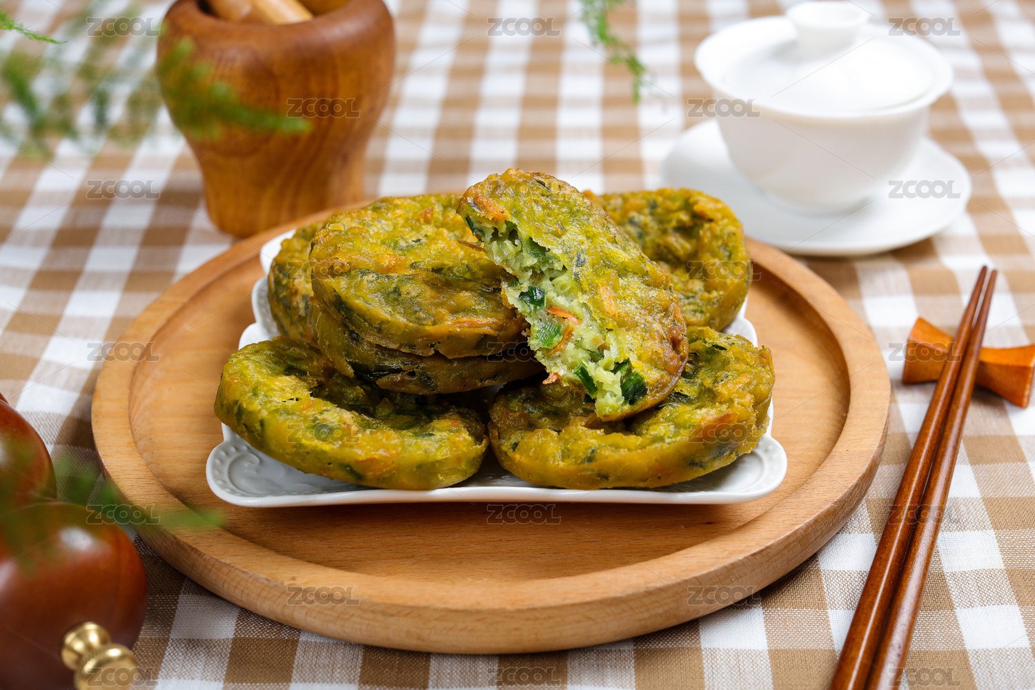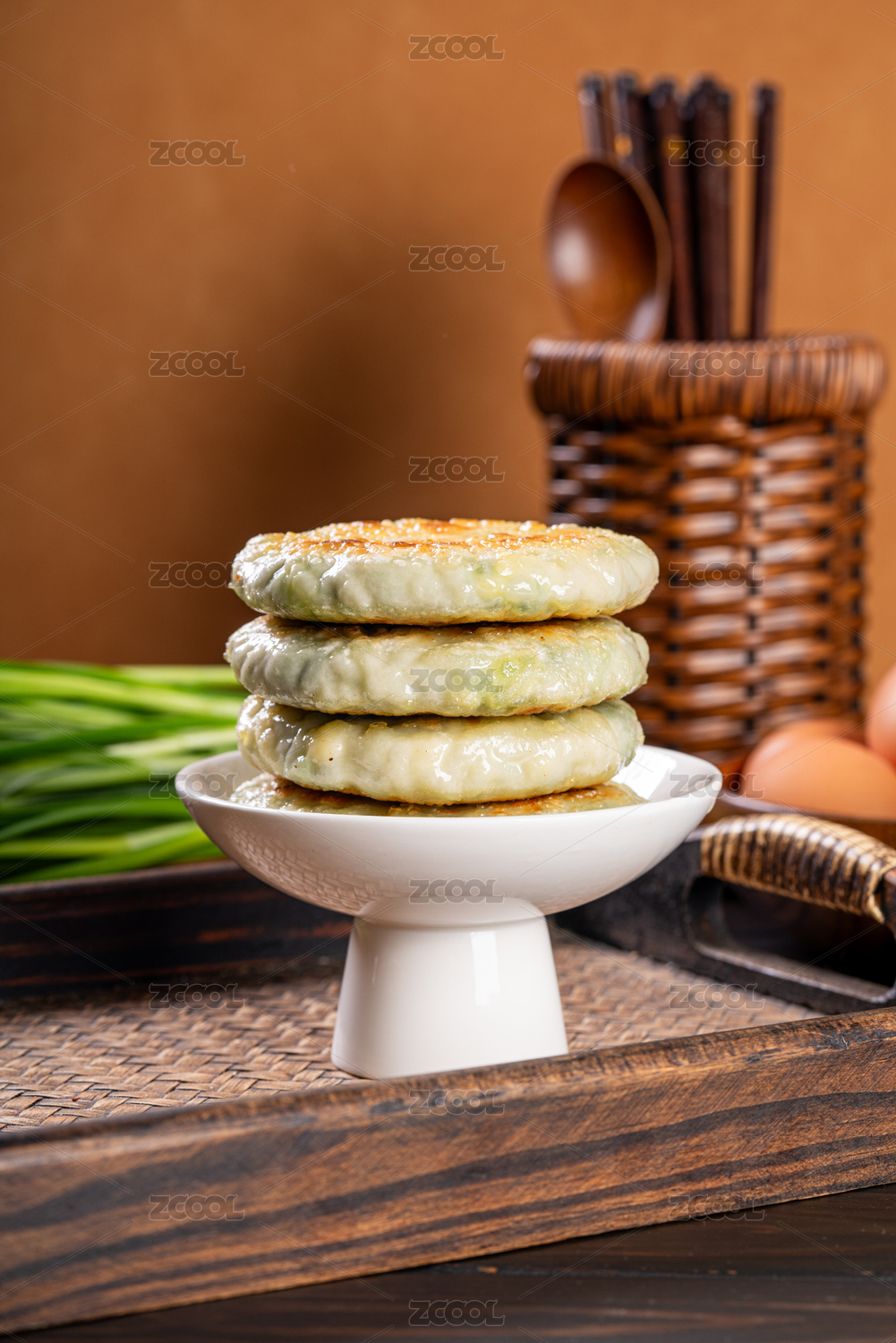 桌面上的盤子里的美味可口的韭菜雞蛋餡餅