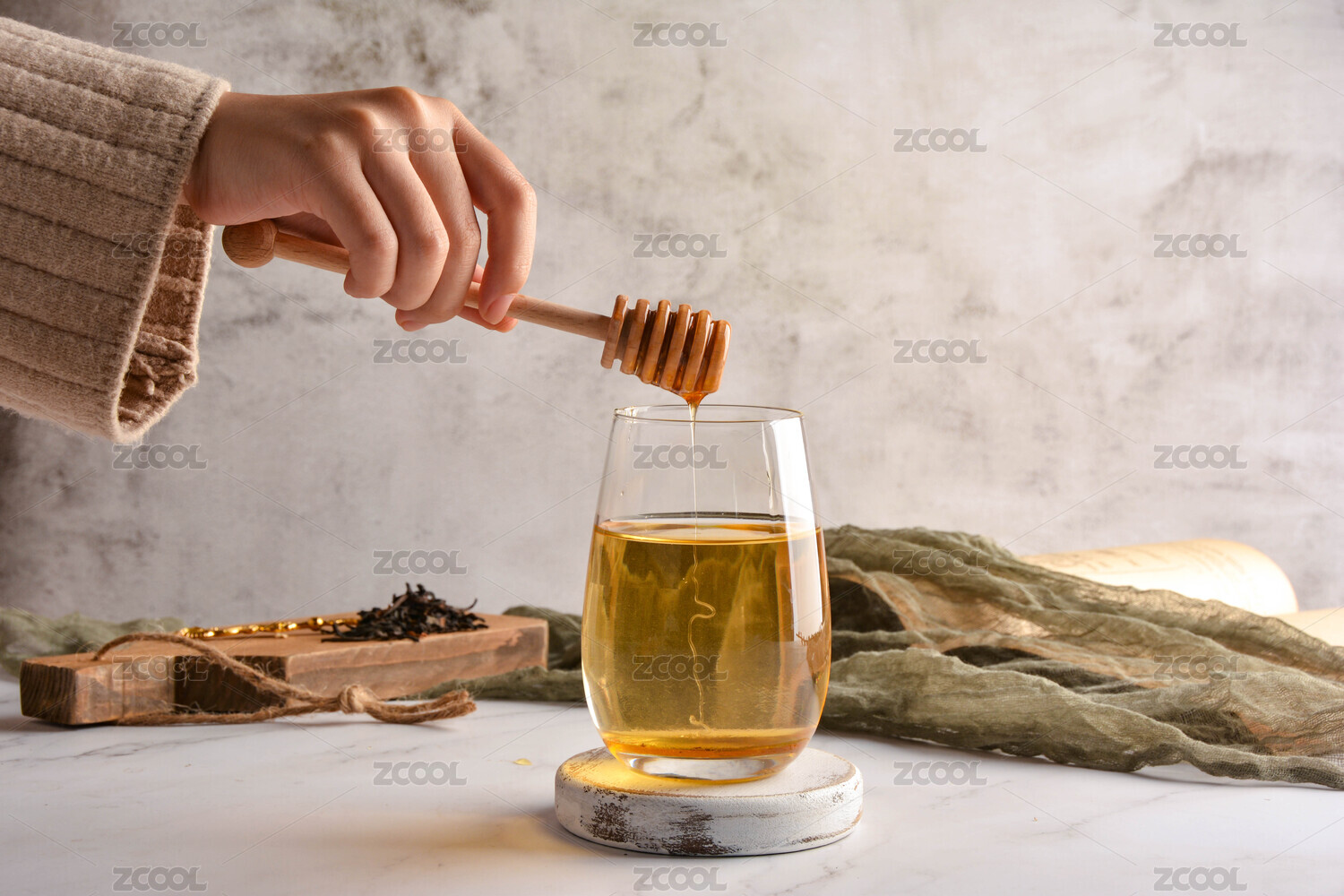 蜂蜜緩慢滴入姜茶制作暖心飲品