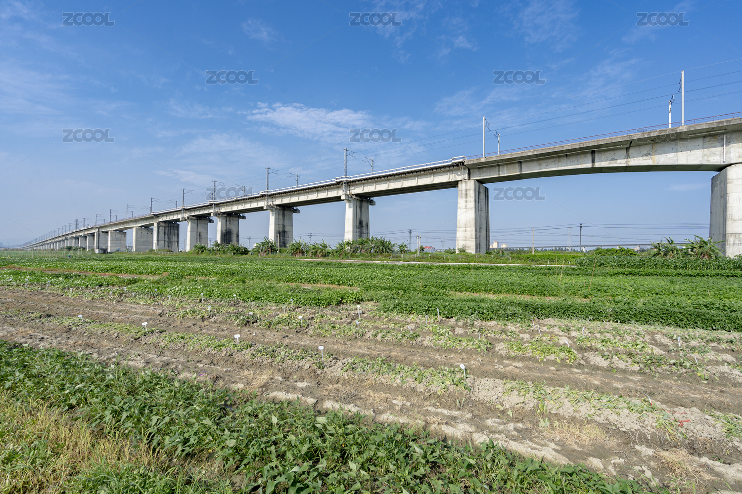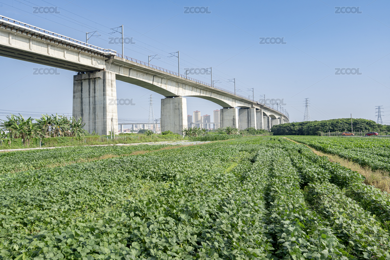 動車高架橋從種有地瓜的農(nóng)田穿過