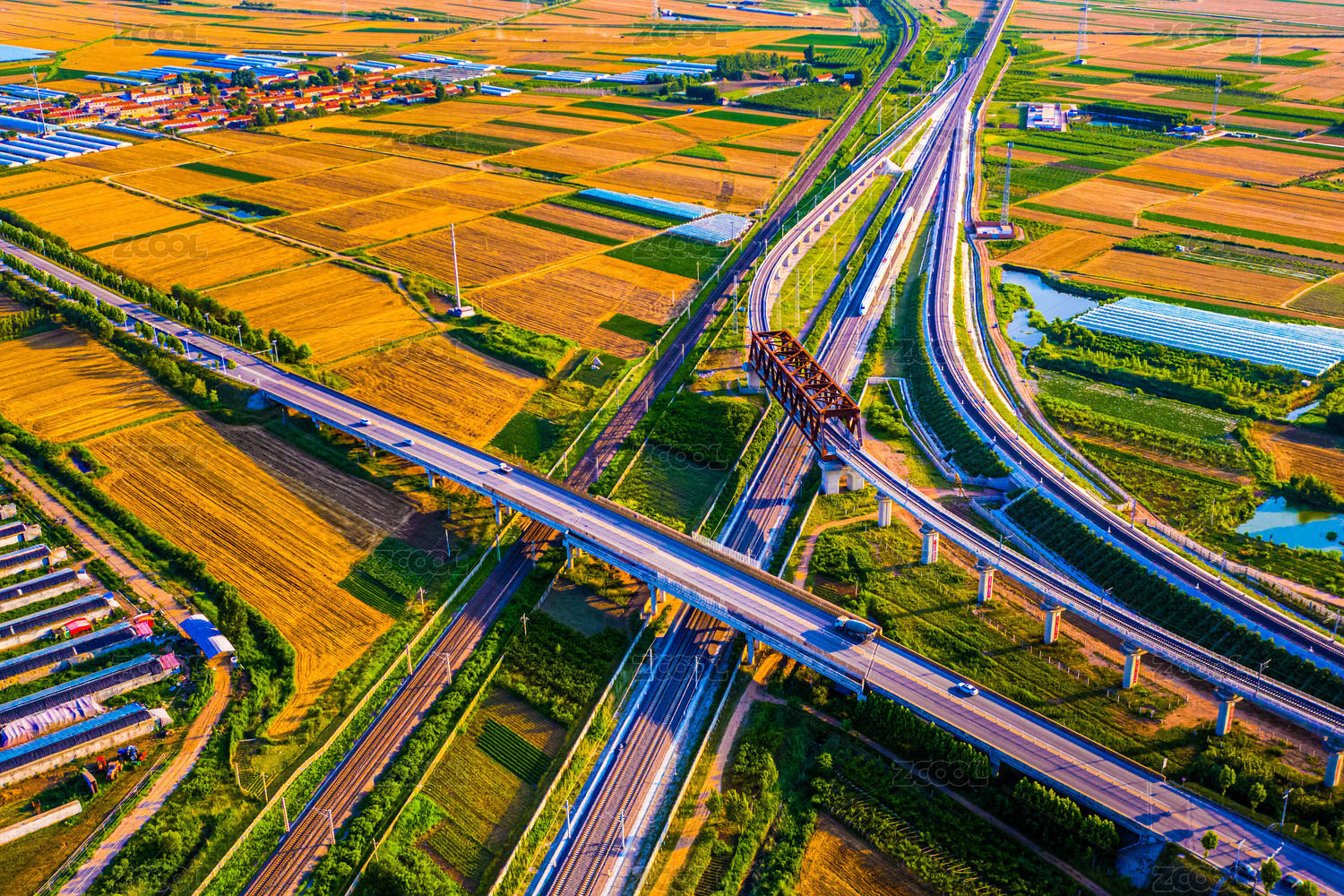 動車高架橋從種有花生作物的農(nóng)田穿過