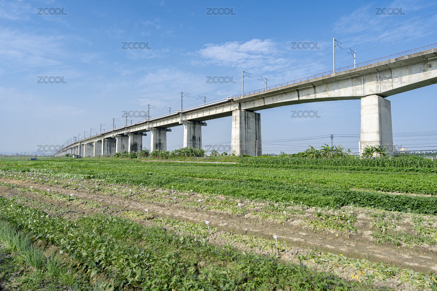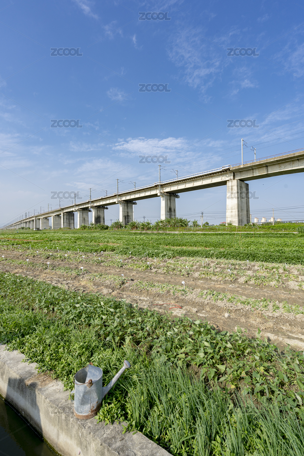 動車高架橋從種有瓜類蔬菜的農(nóng)田穿過