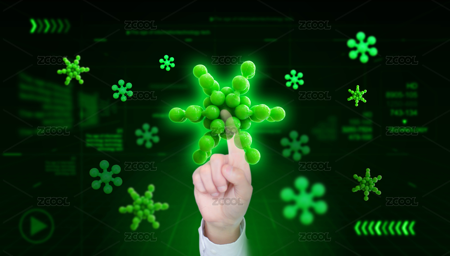 手指點(diǎn)觸屏幕上懸浮分子未來(lái)醫(yī)療研究概念