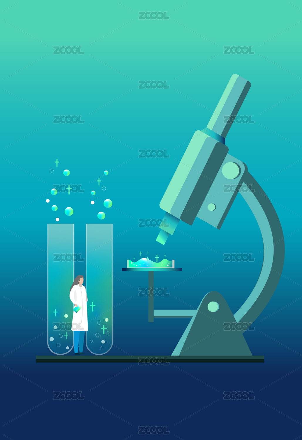 醫(yī)藥醫(yī)療研究科技疫苗矢量顯微鏡扁平漸變