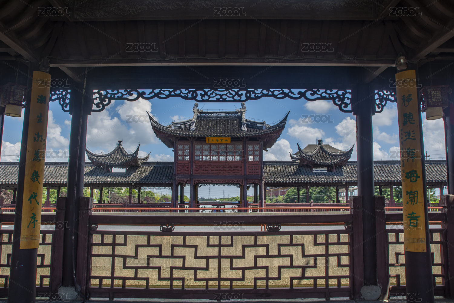 中國浙江嘉興海寧鹽官古城宣德廊橋橋亭