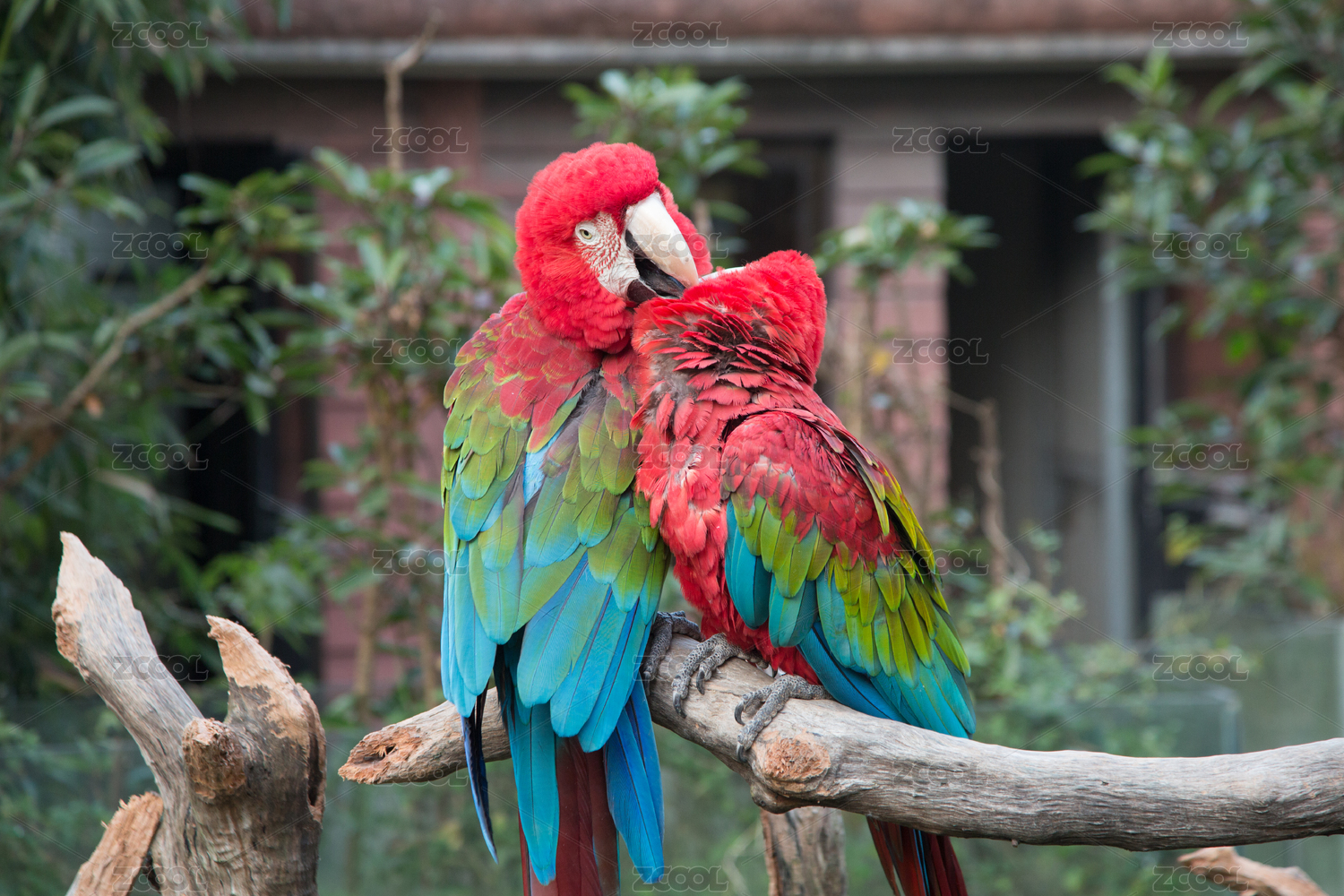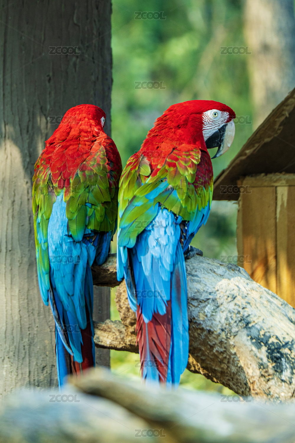 上海野生動(dòng)物園里的紅綠金剛鸚鵡