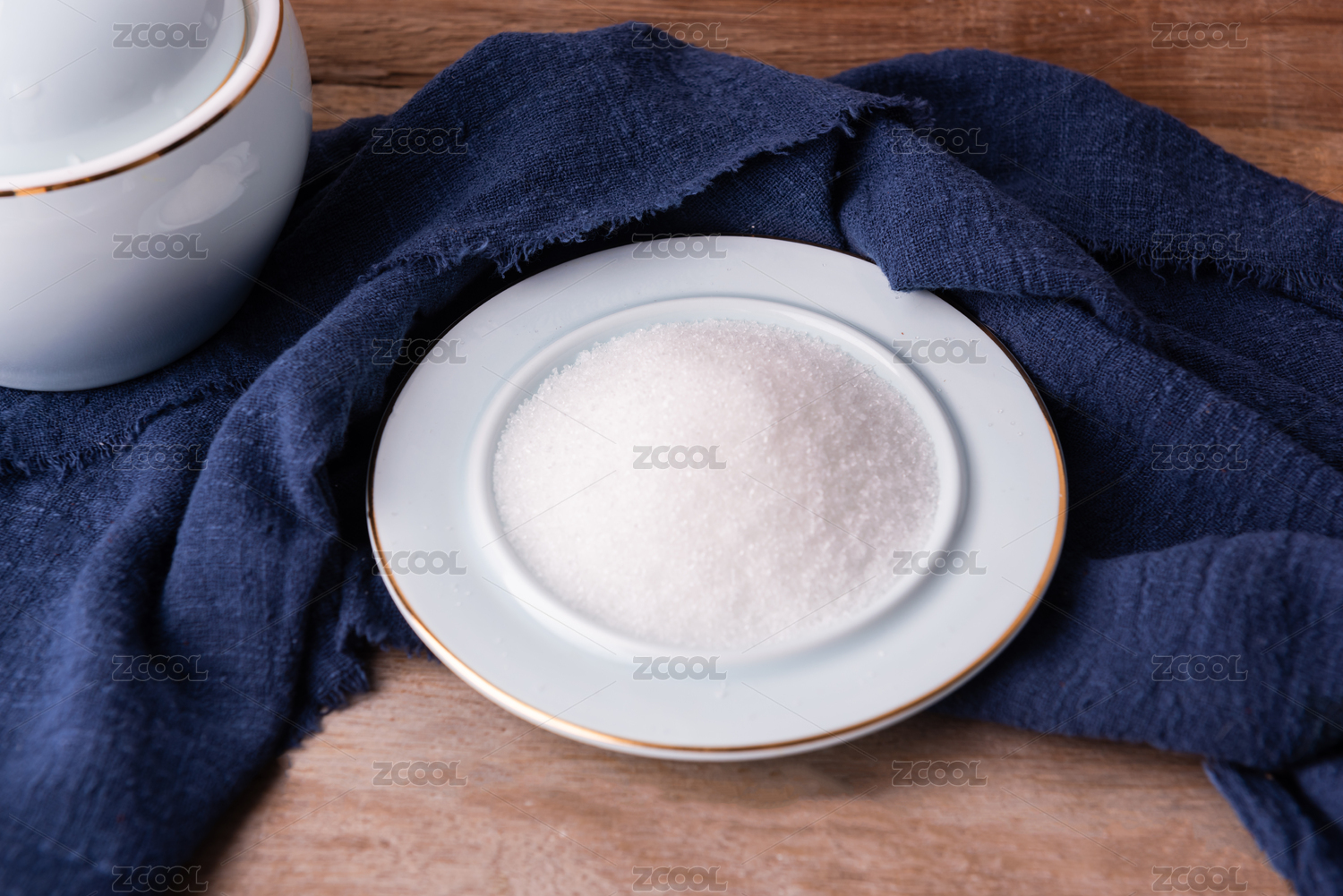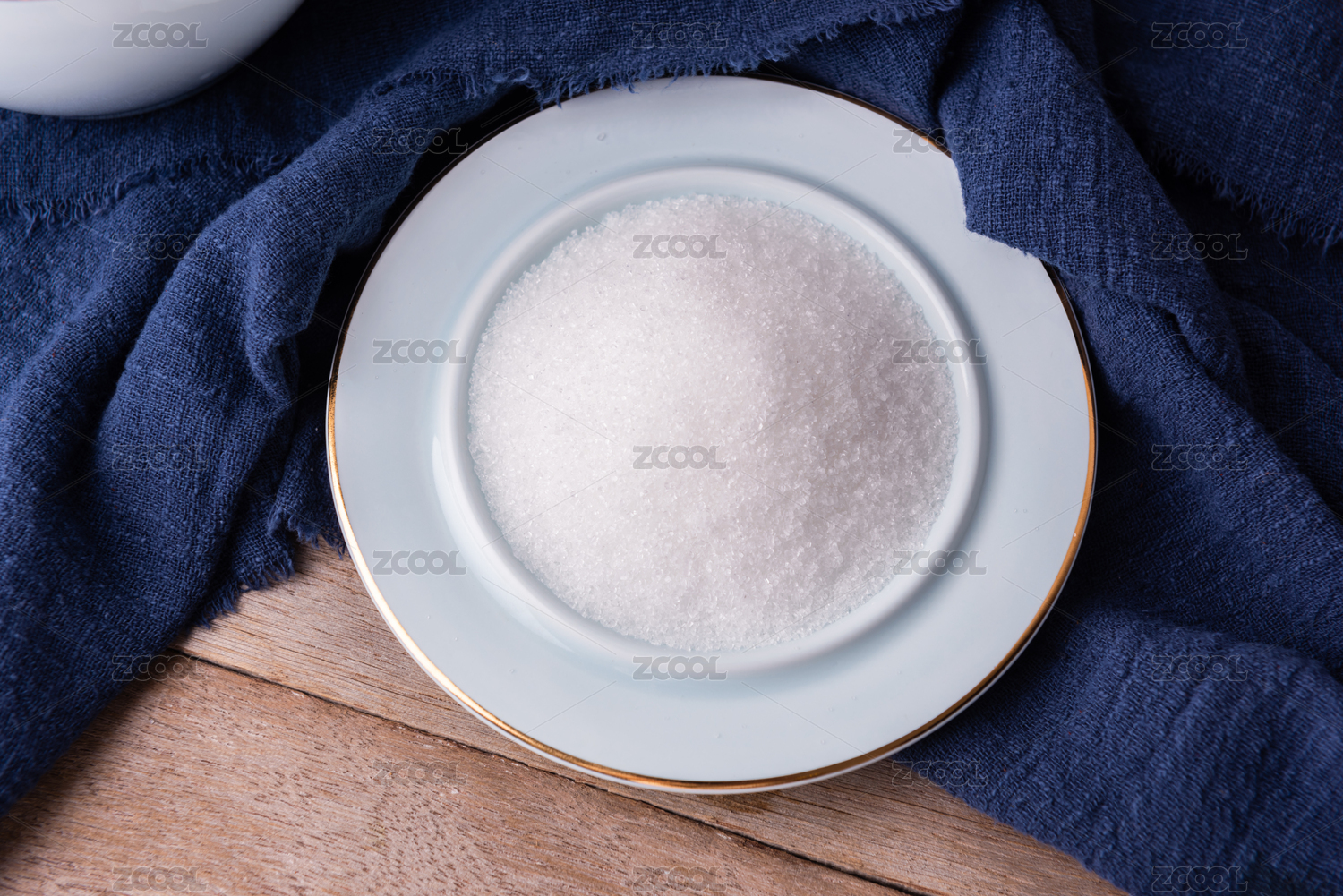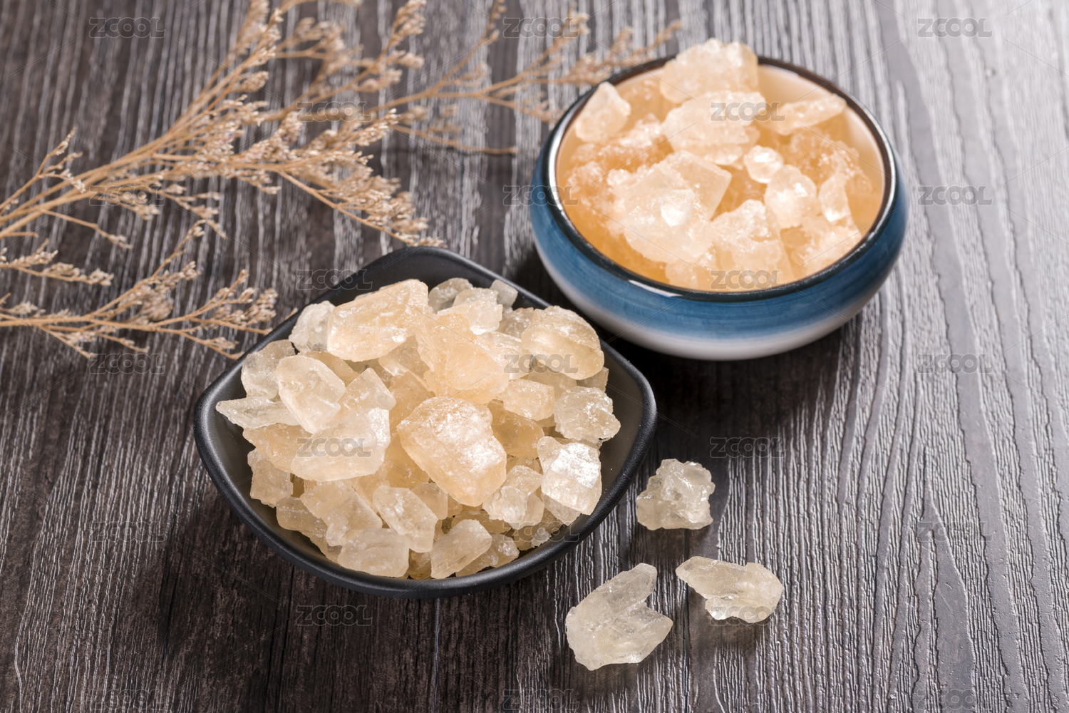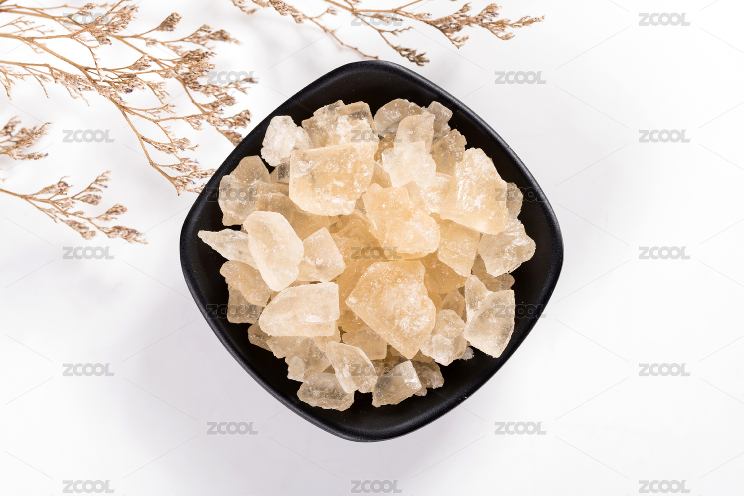盛放在碟子中的黃冰糖擺放在桌面上