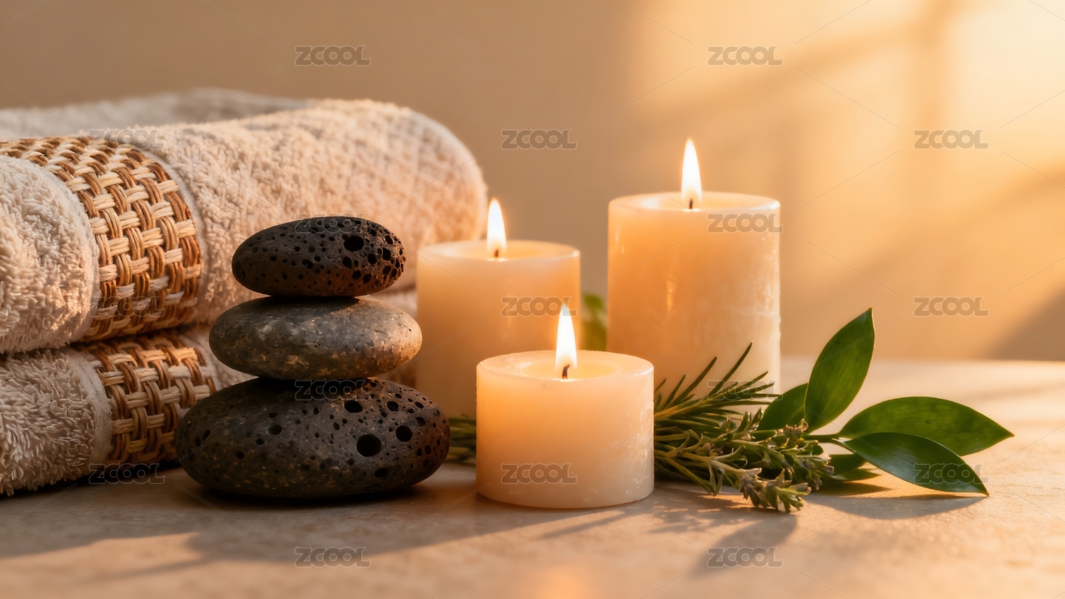中醫(yī)藥題材的針灸和熱石,3d渲染