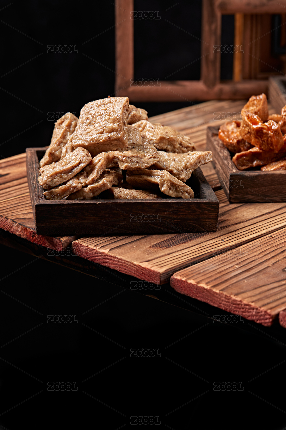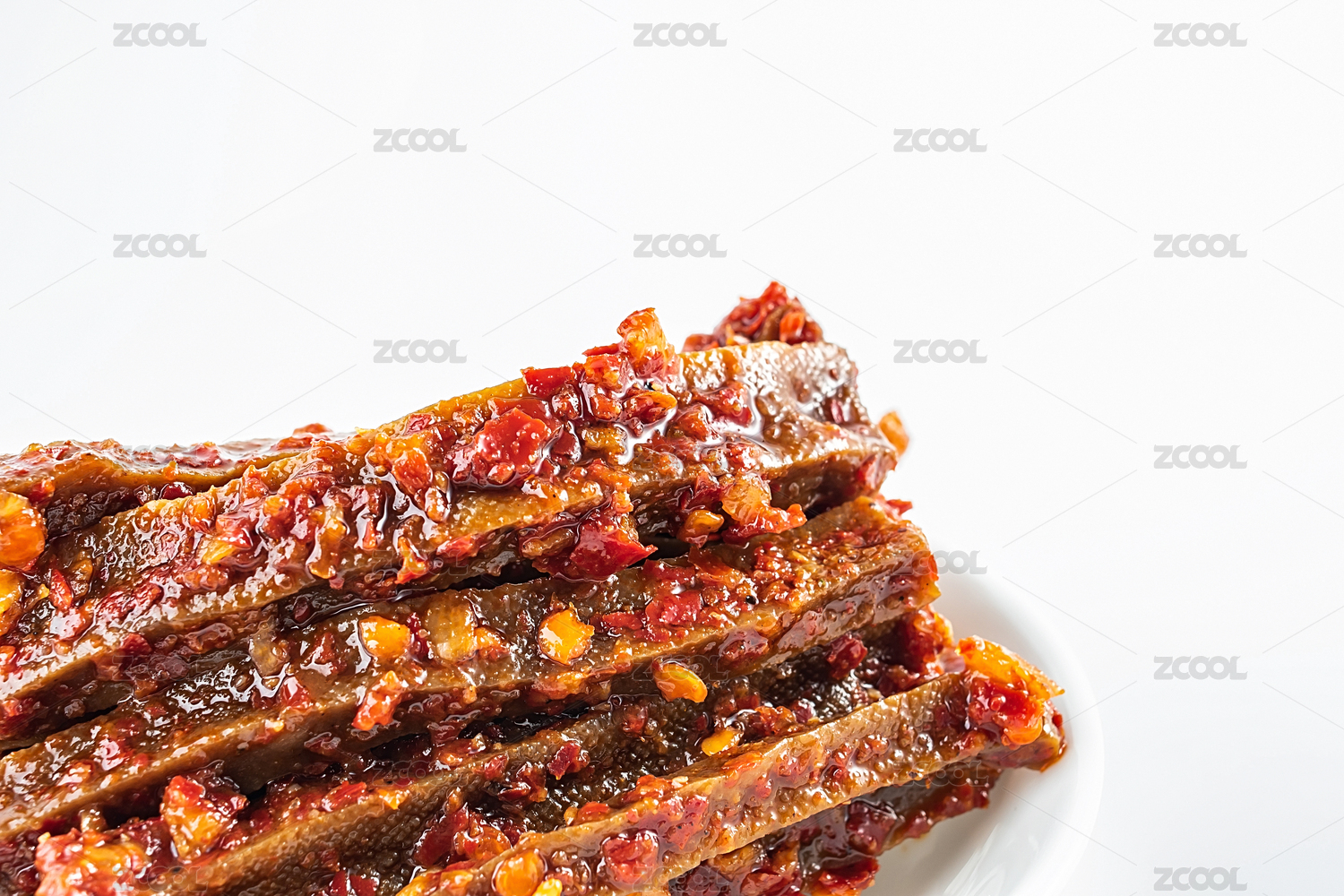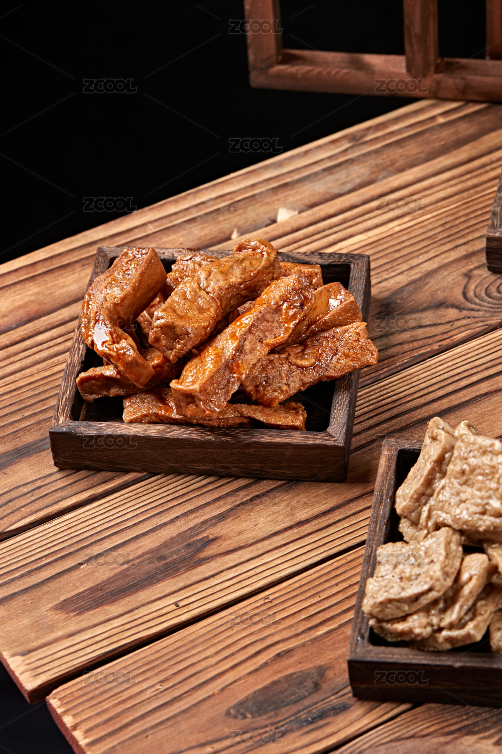 中國湖南省特色風味小吃麻辣香干豆腐和小魚仔