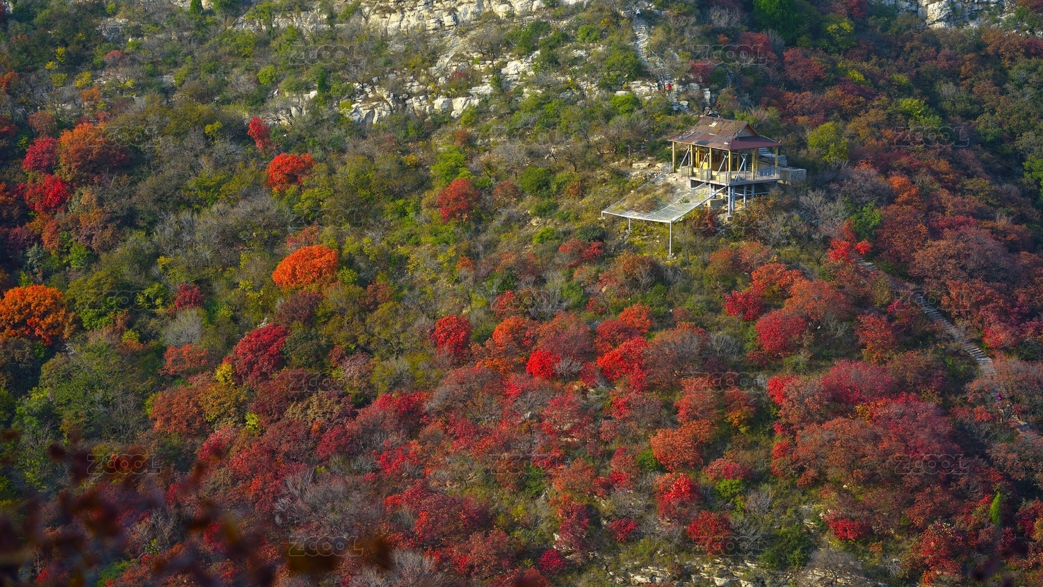 中國山東省淄博市臨朐石門坊的漫山紅葉