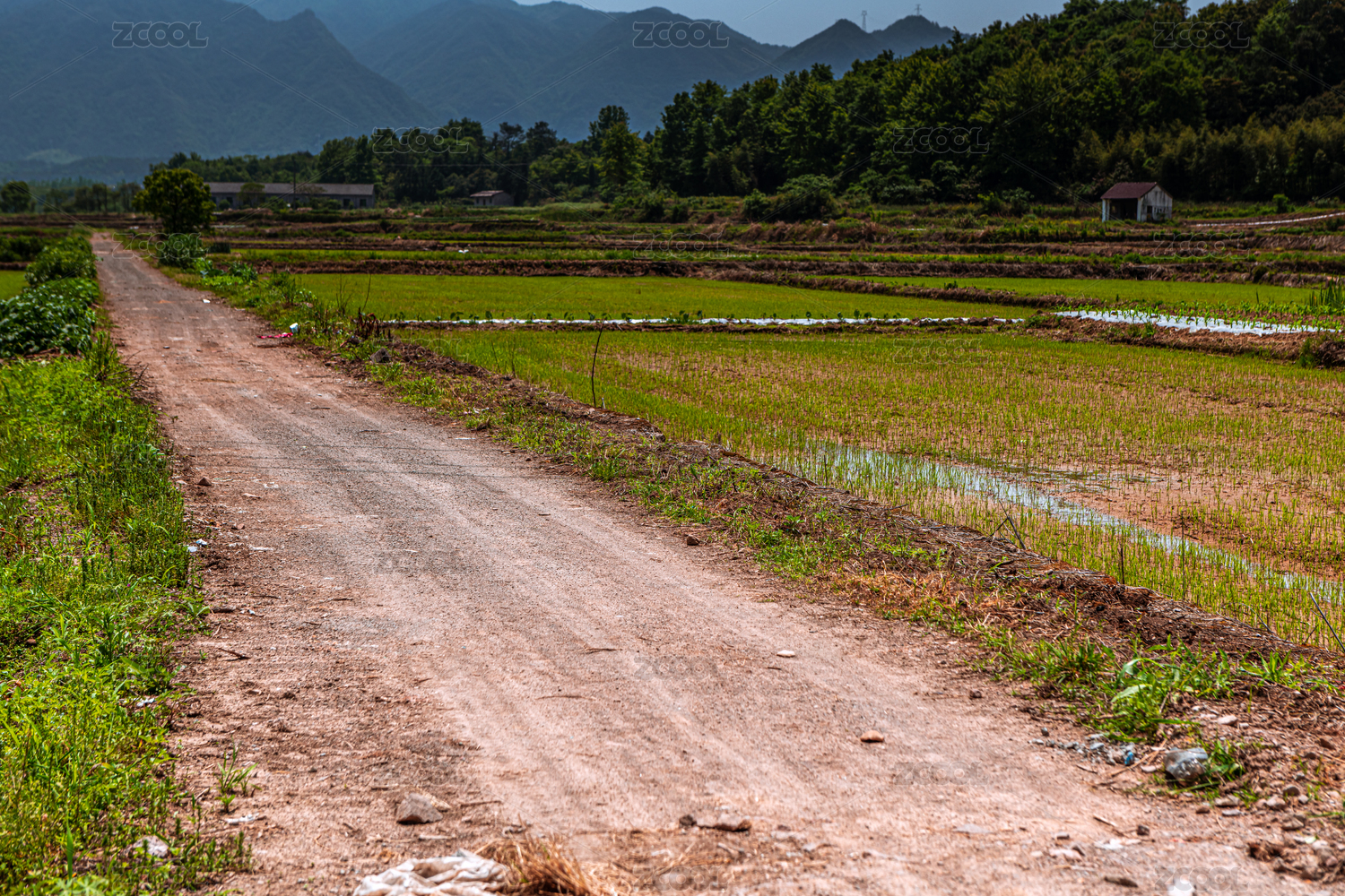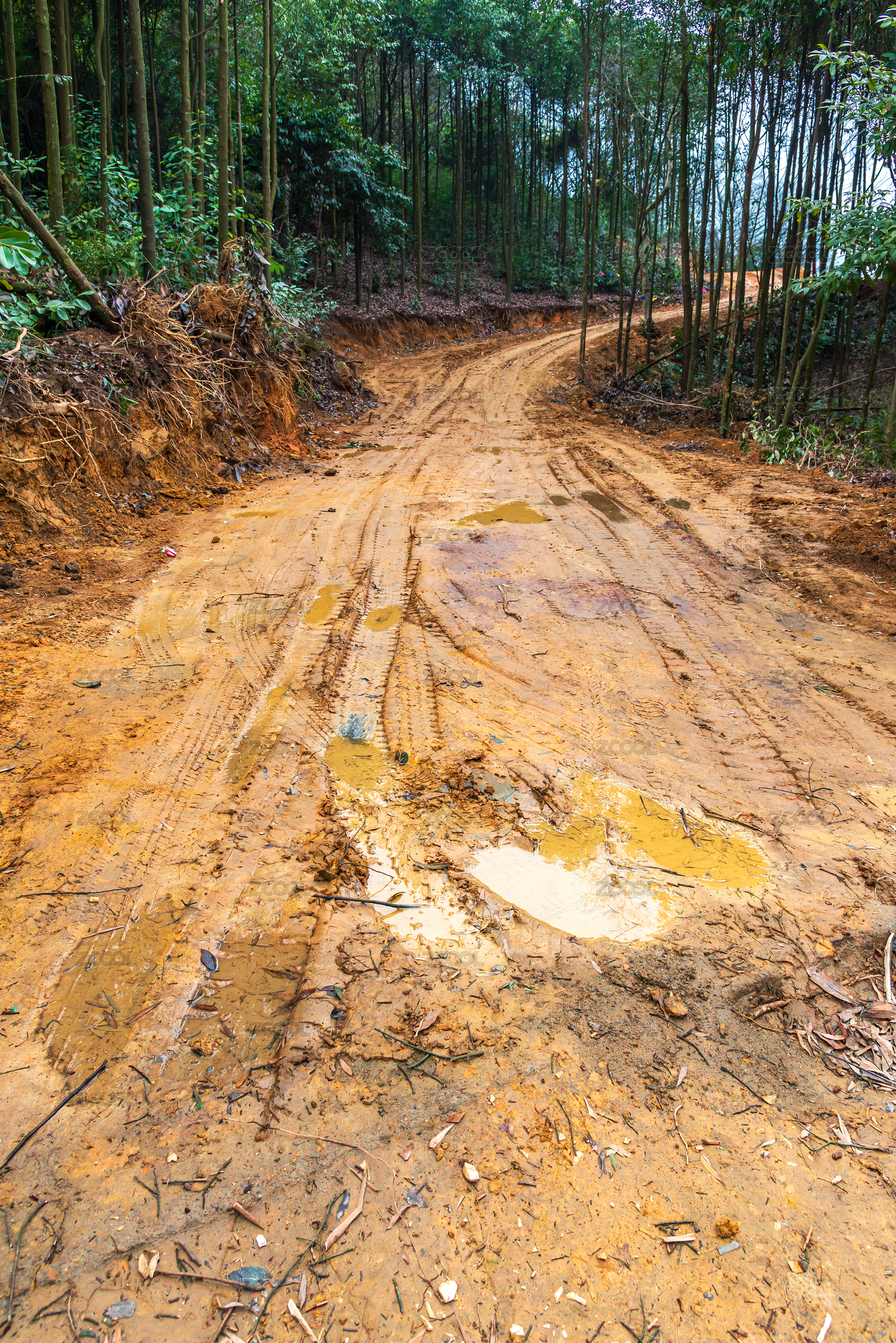 雨后山區(qū)泥濘的道路遠(yuǎn)景
