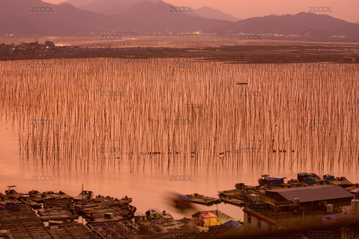 福建省霞浦縣沙江S灣-夕陽下漁村海灘