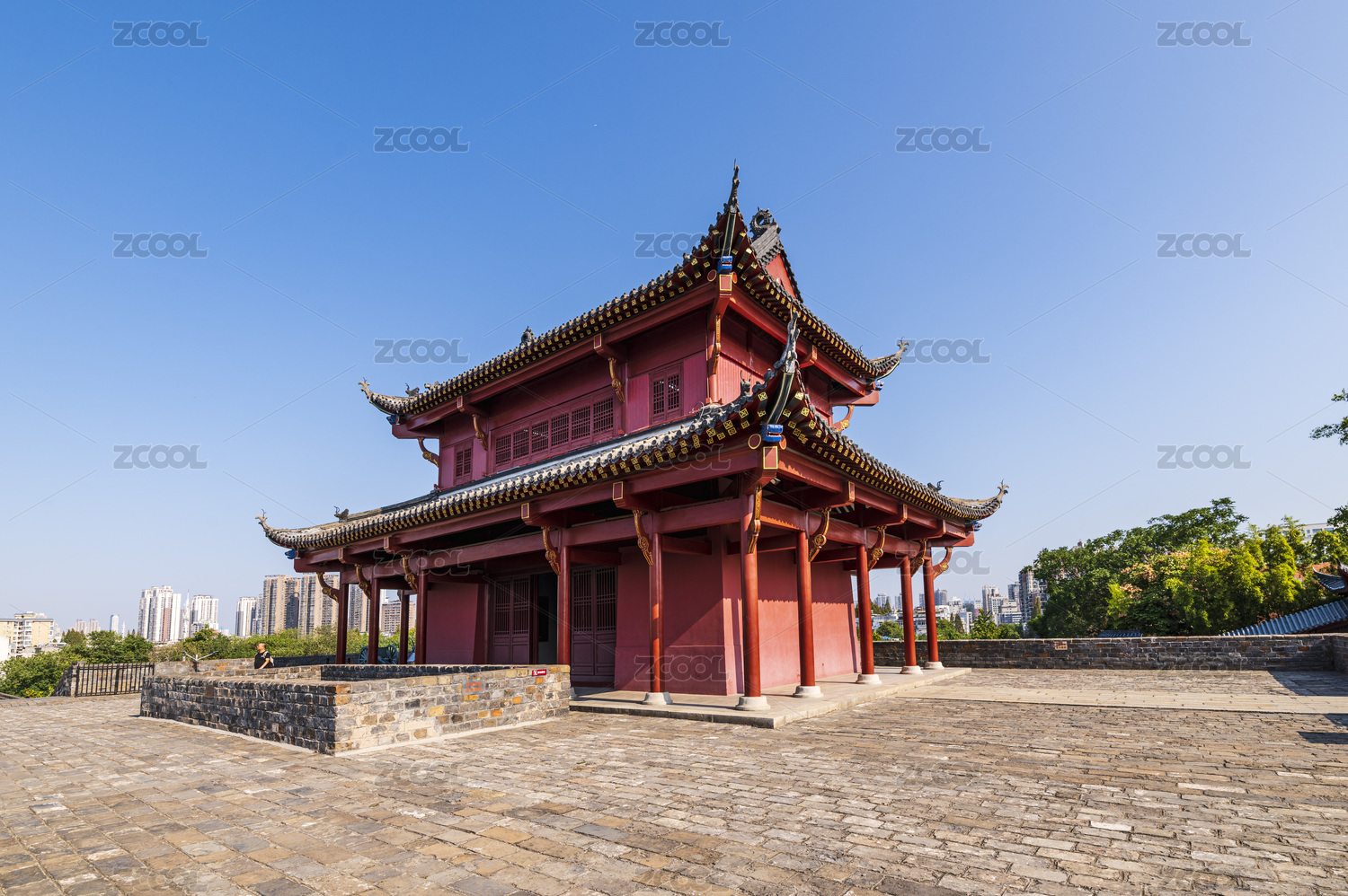 湖北省武漢市東湖風(fēng)景區(qū)楚城古城門航拍