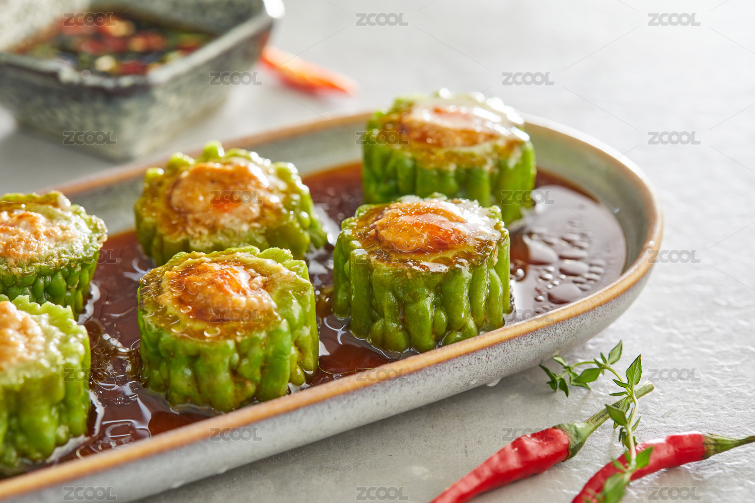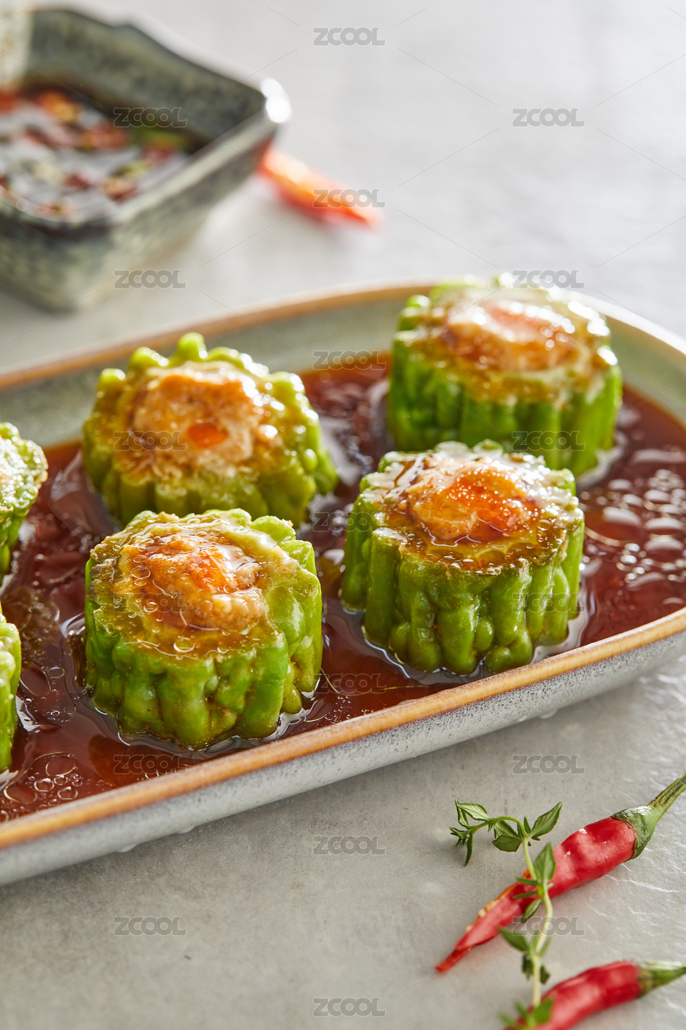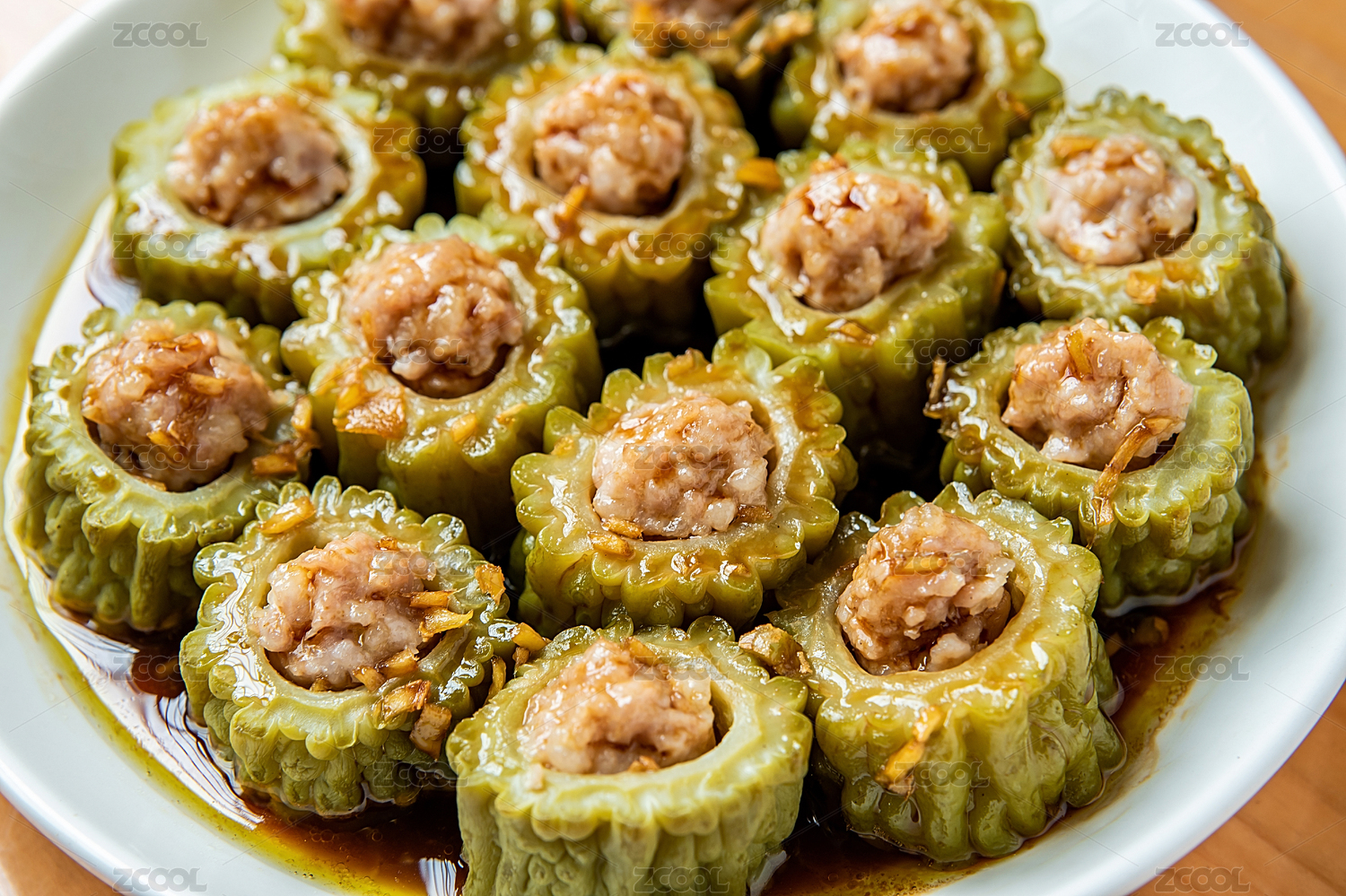 盤子里的苦瓜釀肉