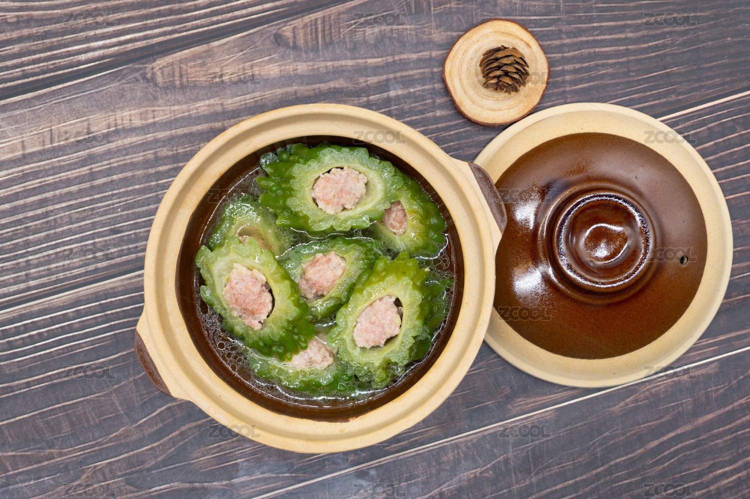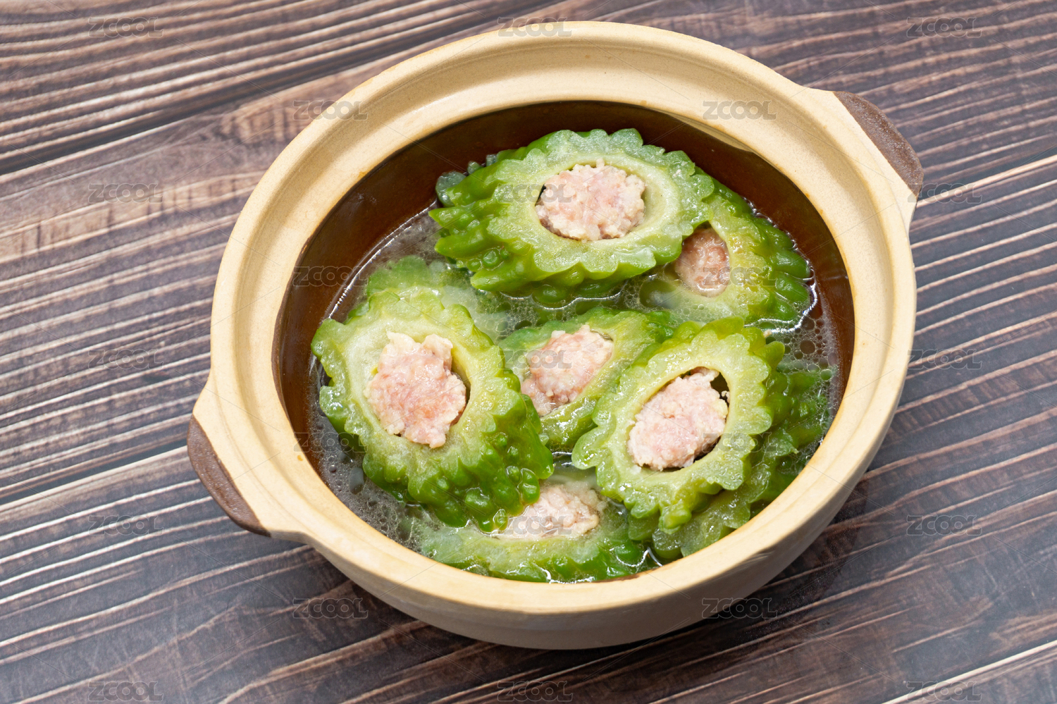 木桌背景傳統(tǒng)客家菜釀苦瓜