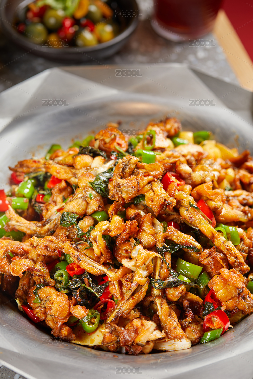 桌面上的一份油炸田雞