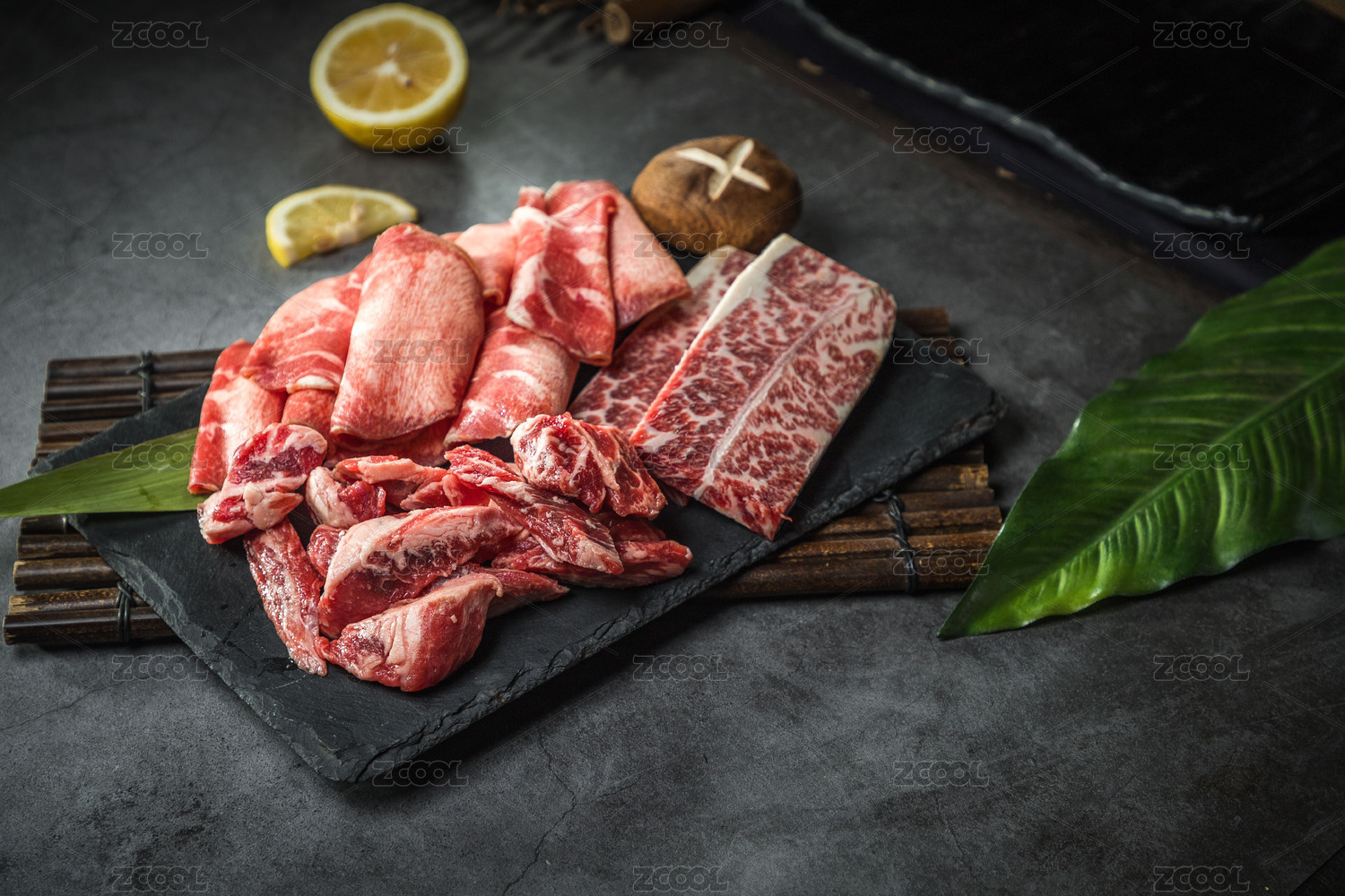 暗色水泥紋桌上放著一盤鐵板烤肉組合