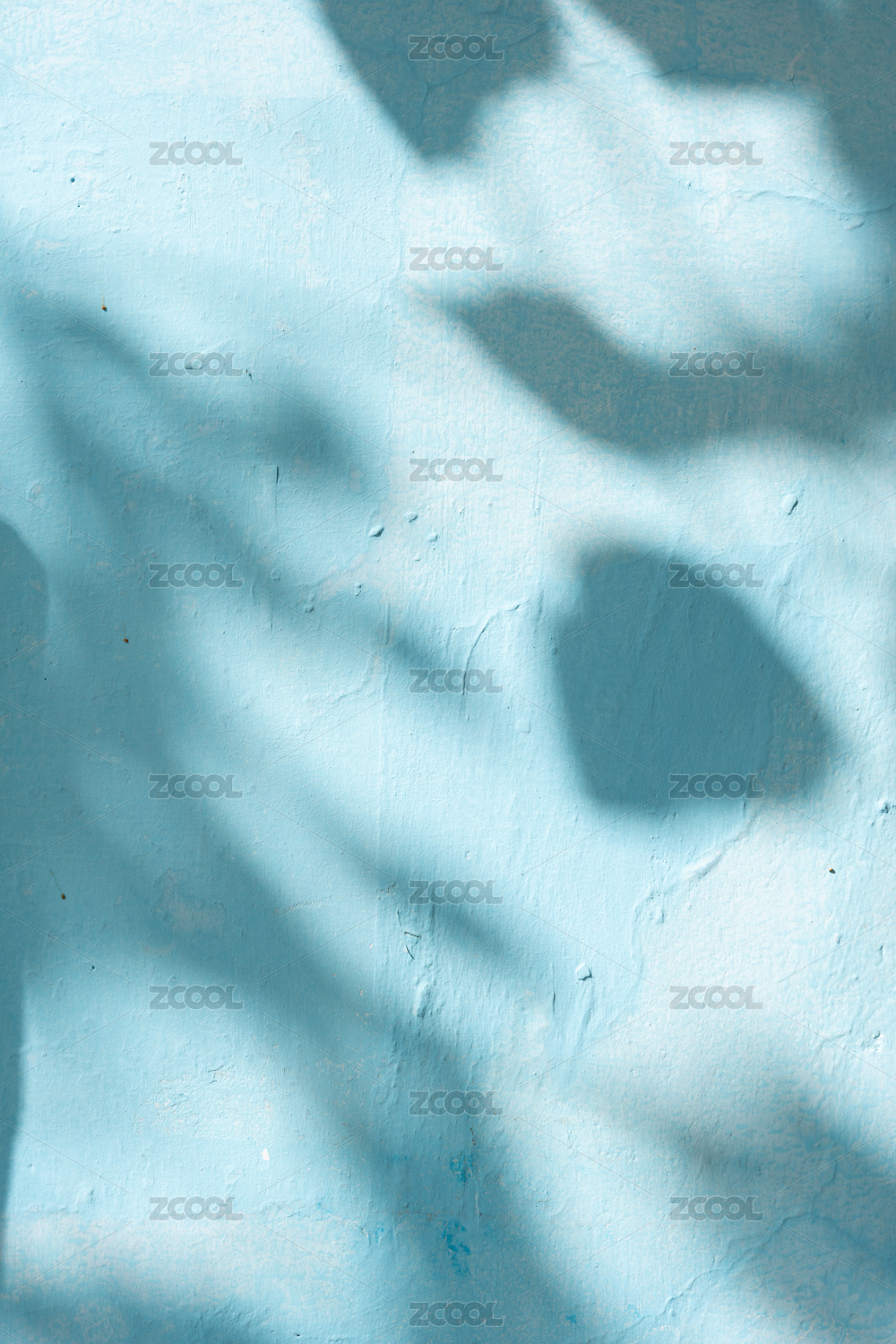 藍色水泥墻上的葉子光影