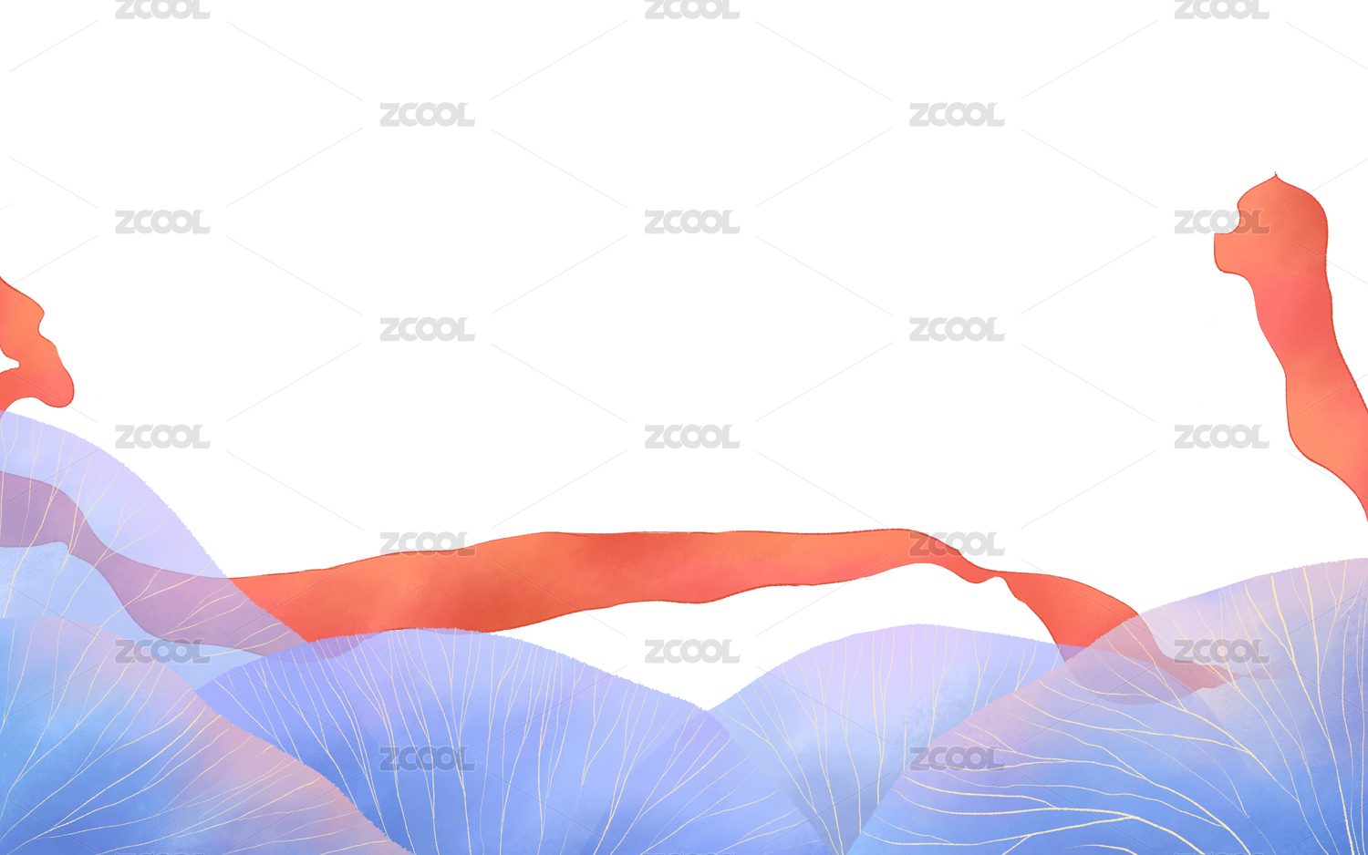 藍色植物葉子紅色絲帶插畫圖素