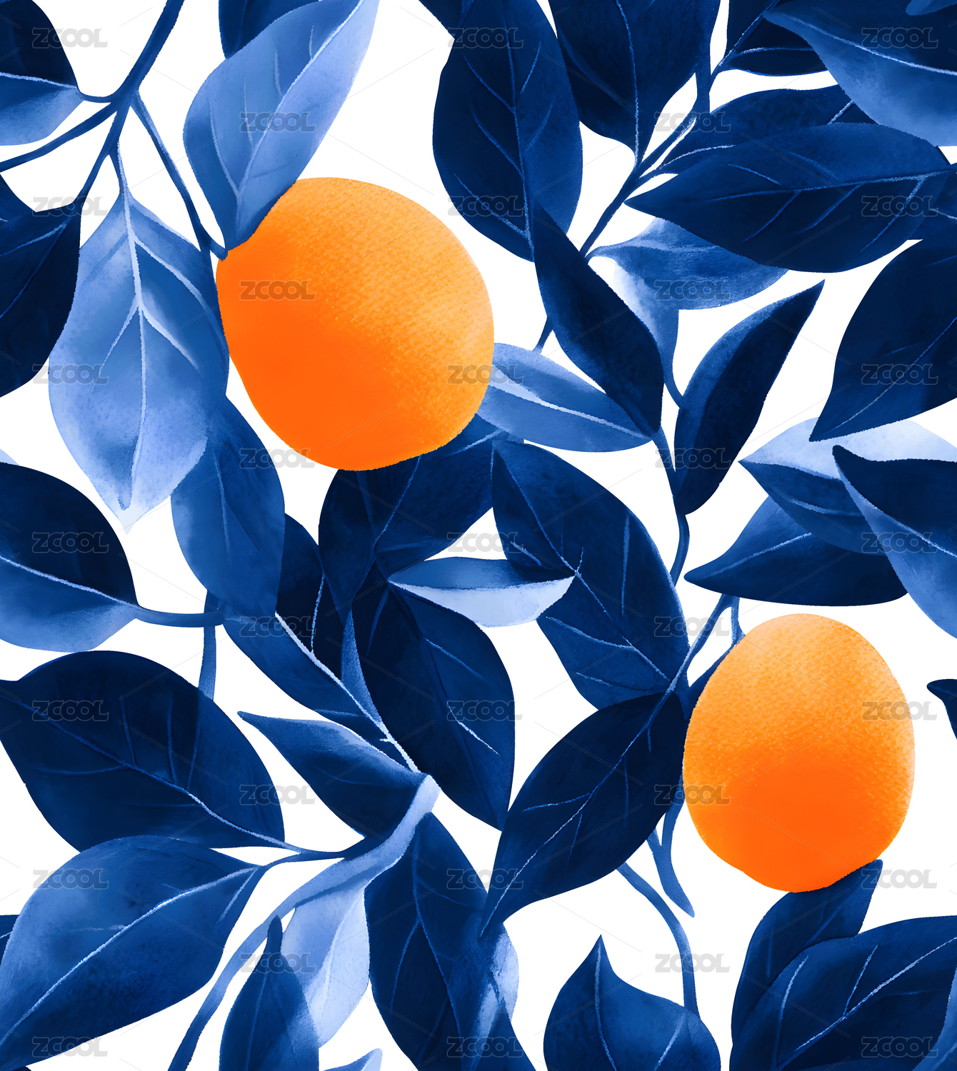 藍色葉子橙色橘子