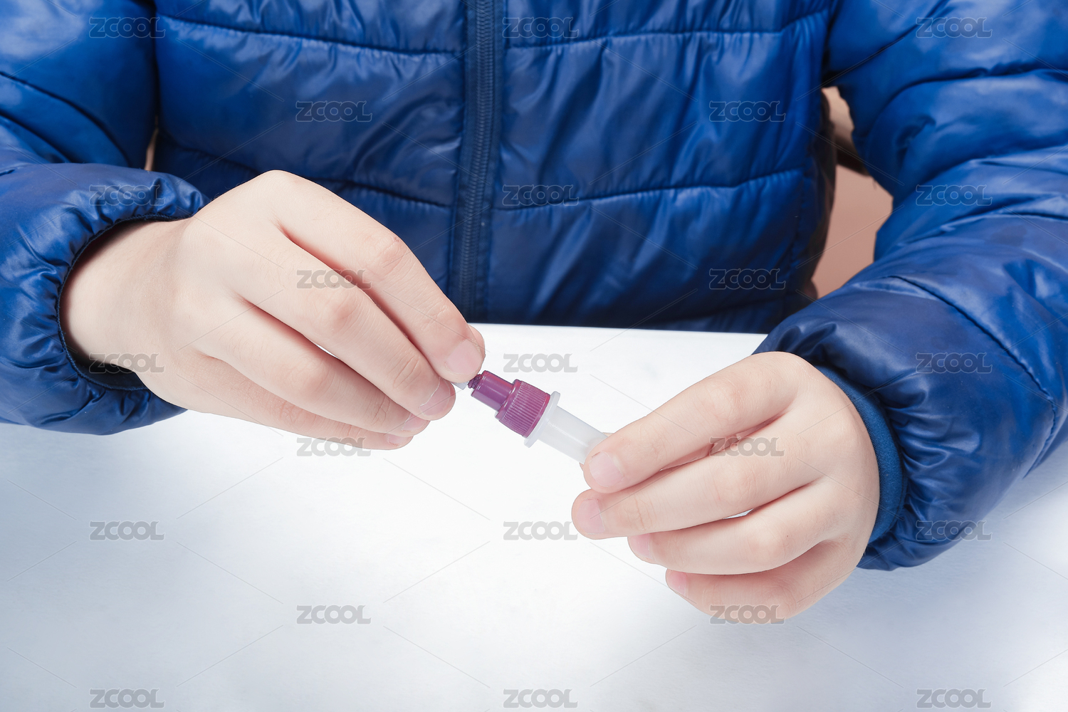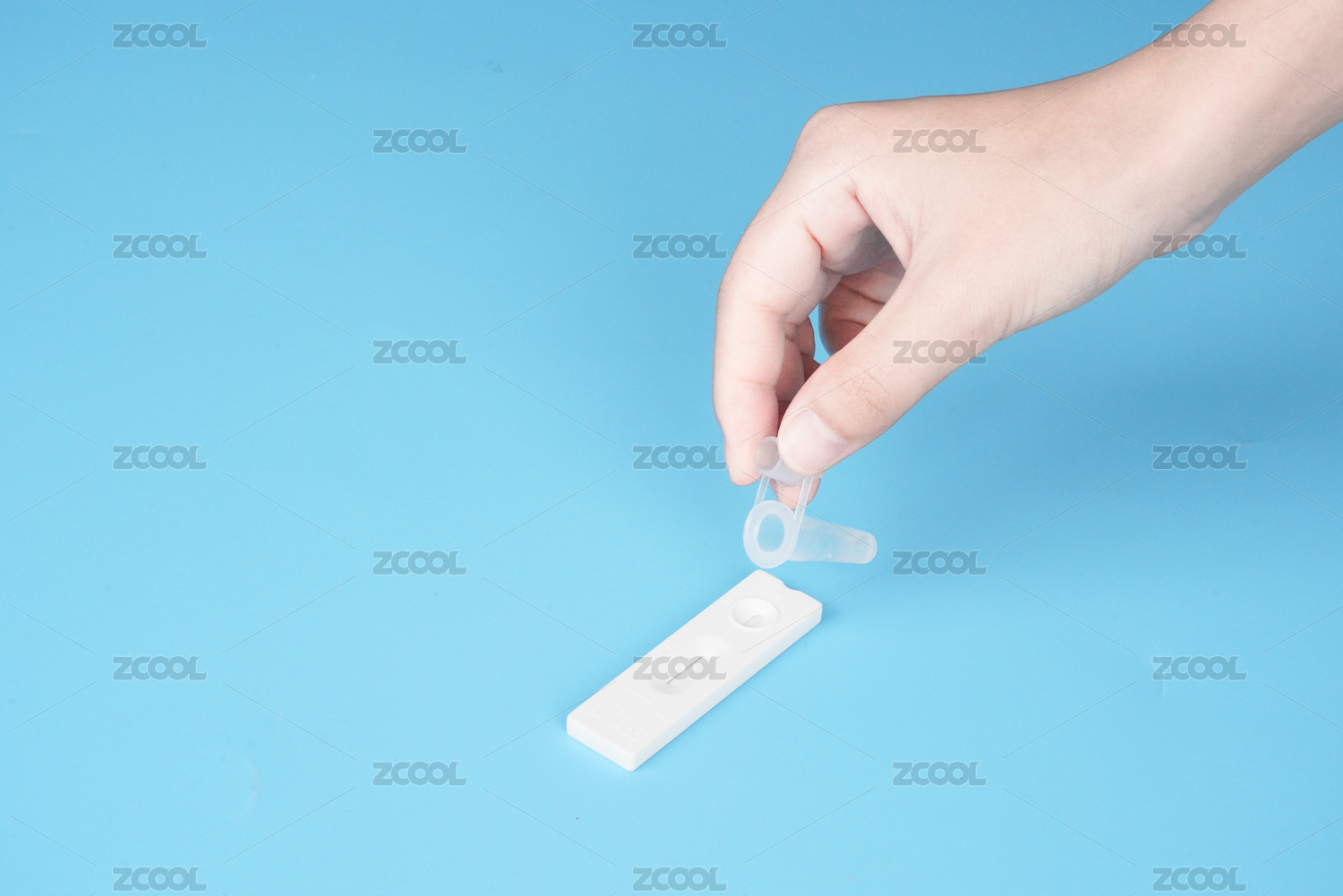 藍(lán)色背景上口罩下的核酸檢測抗原檢測試劑