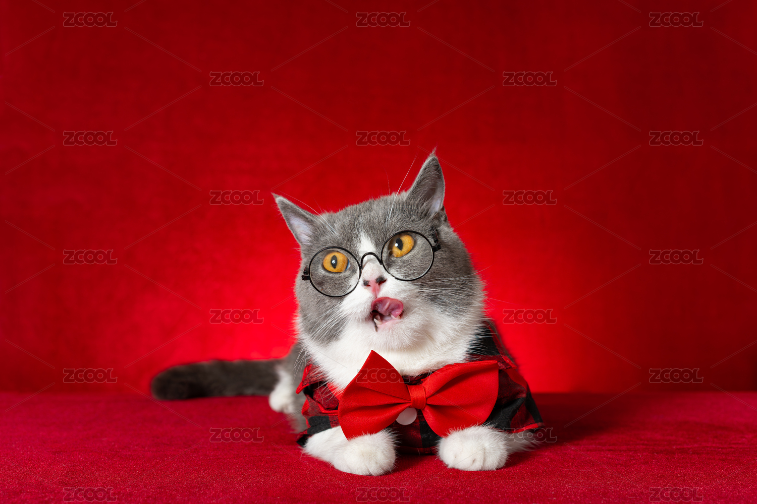 穿著格子衣服戴著蝴蝶結(jié)和眼鏡的萌寵英短貓