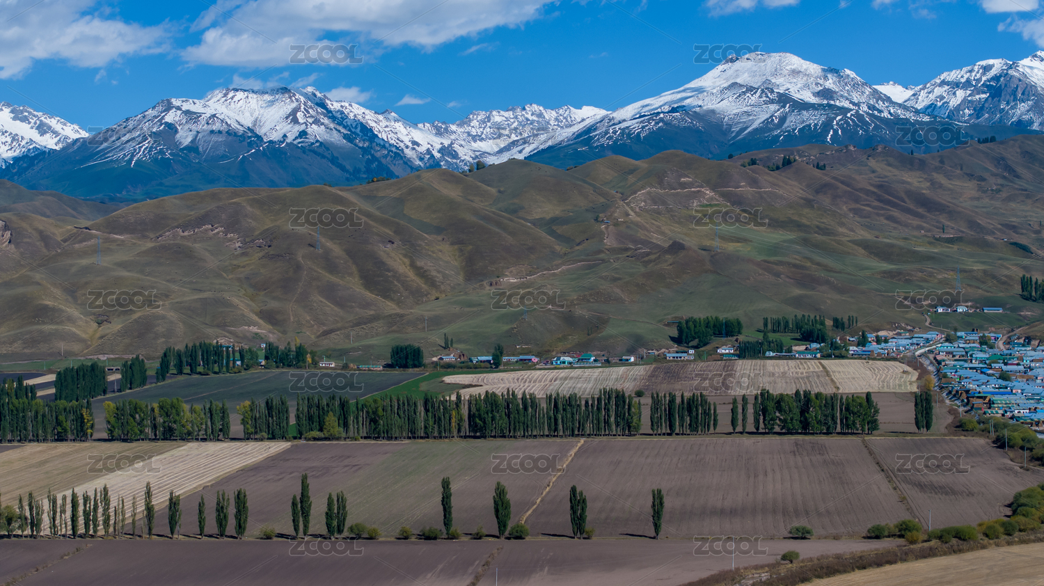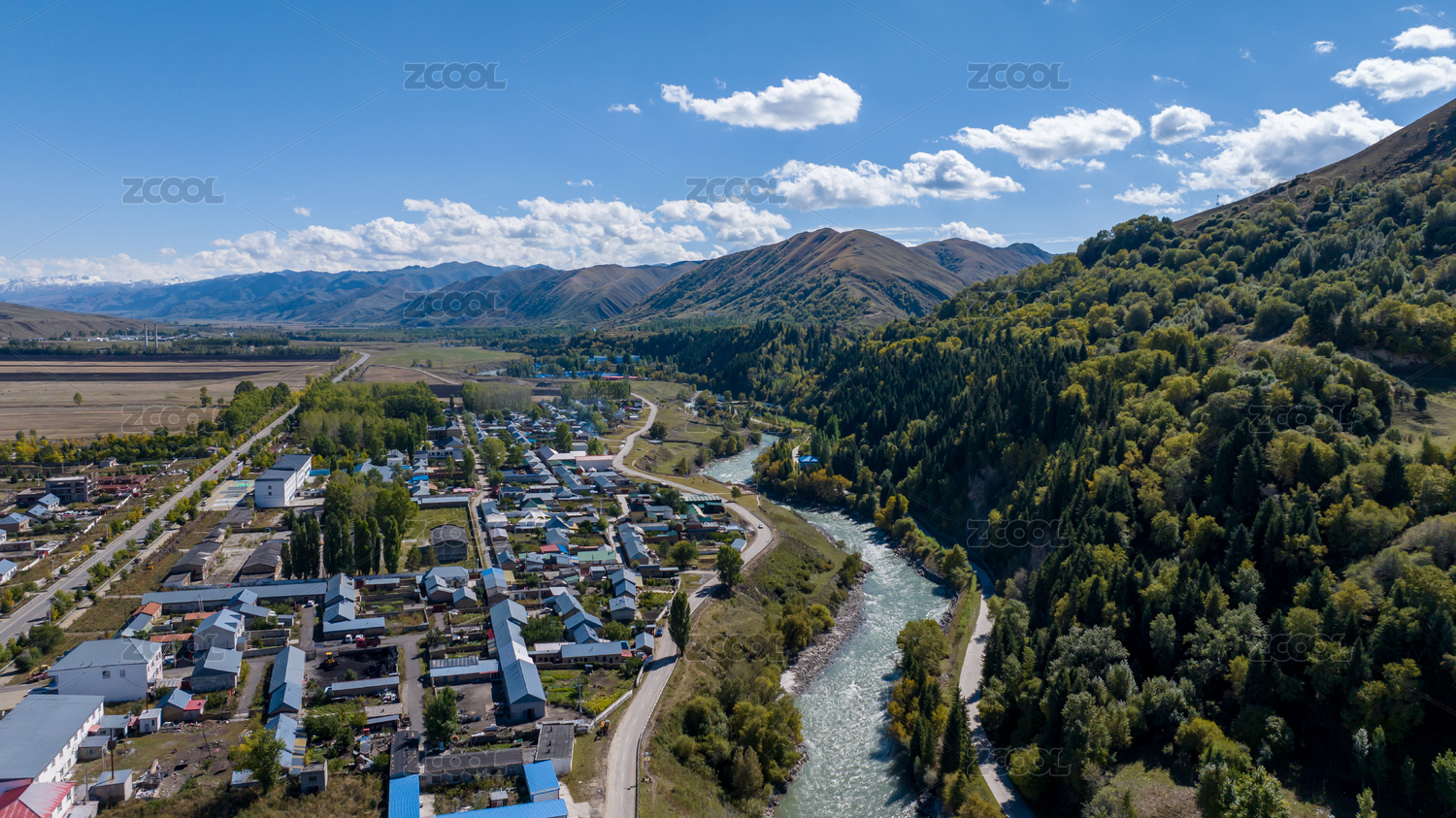 中國新疆哈薩克氈房少數(shù)民族居住區(qū)建筑風(fēng)光