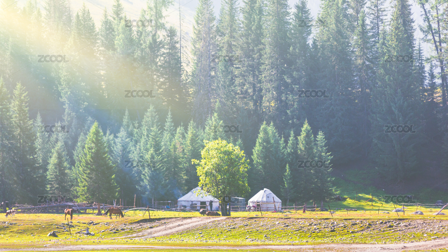 中國新疆喀納斯景區(qū)哈薩克牧民的氈房
