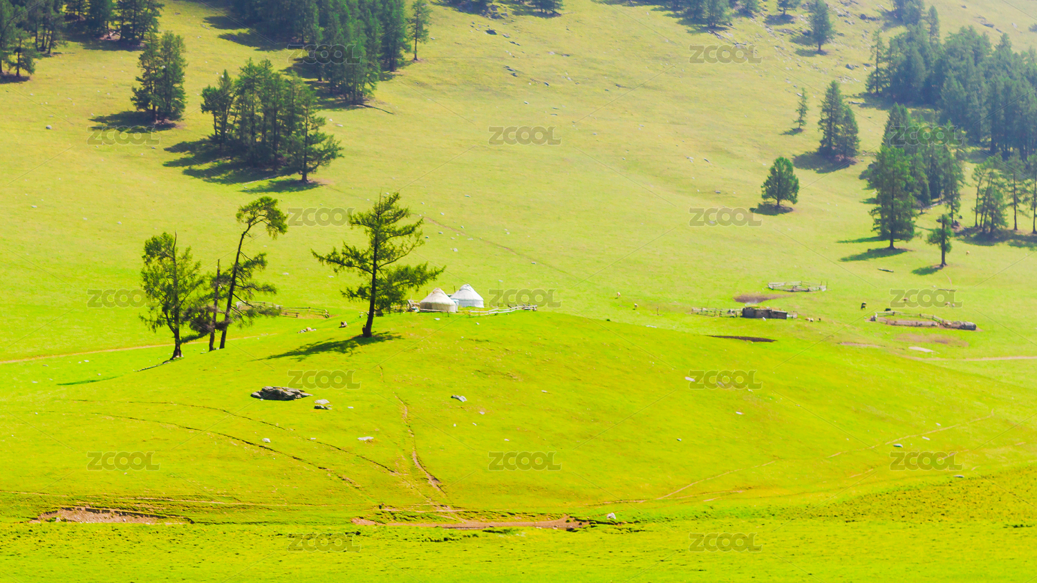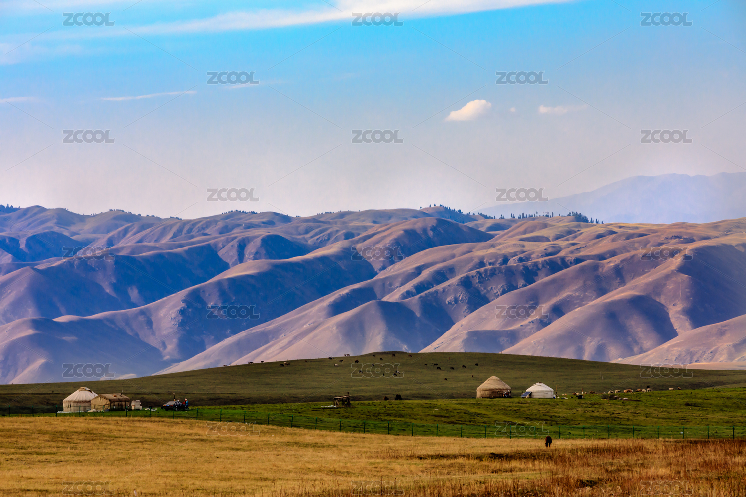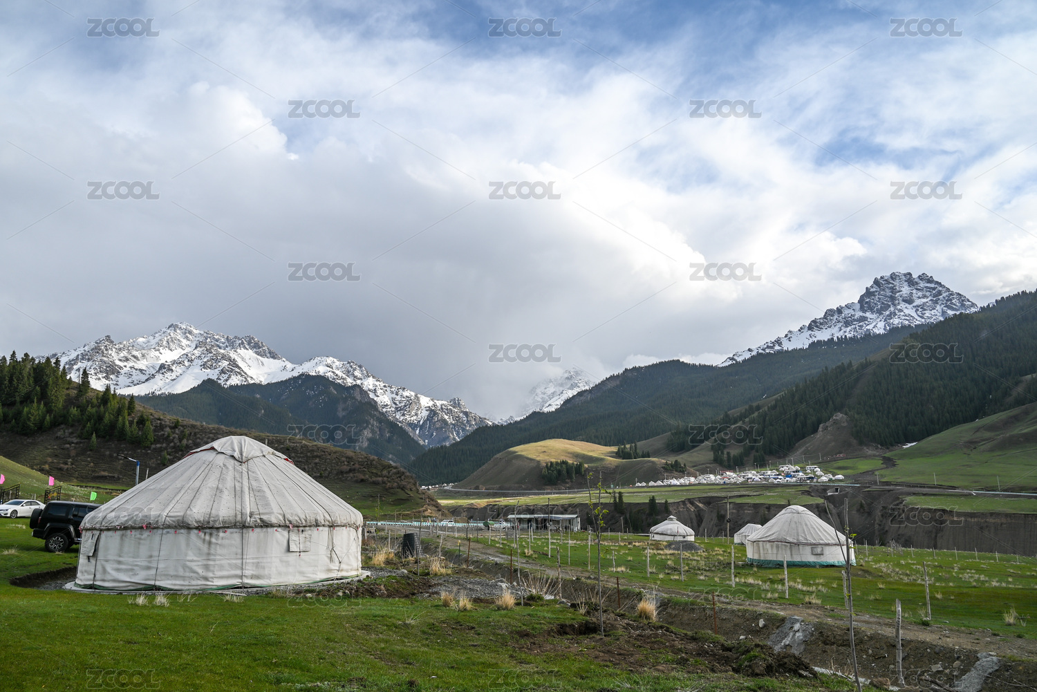 中國新疆那拉提空中草原山脈哈薩克氈房風(fēng)光
