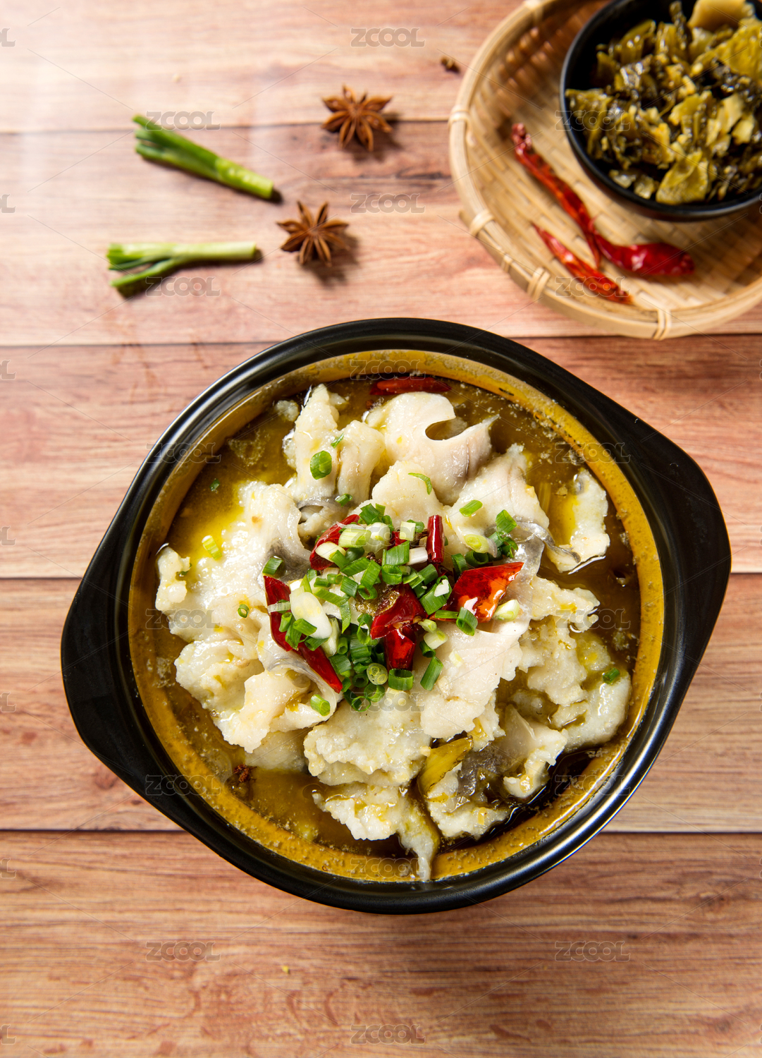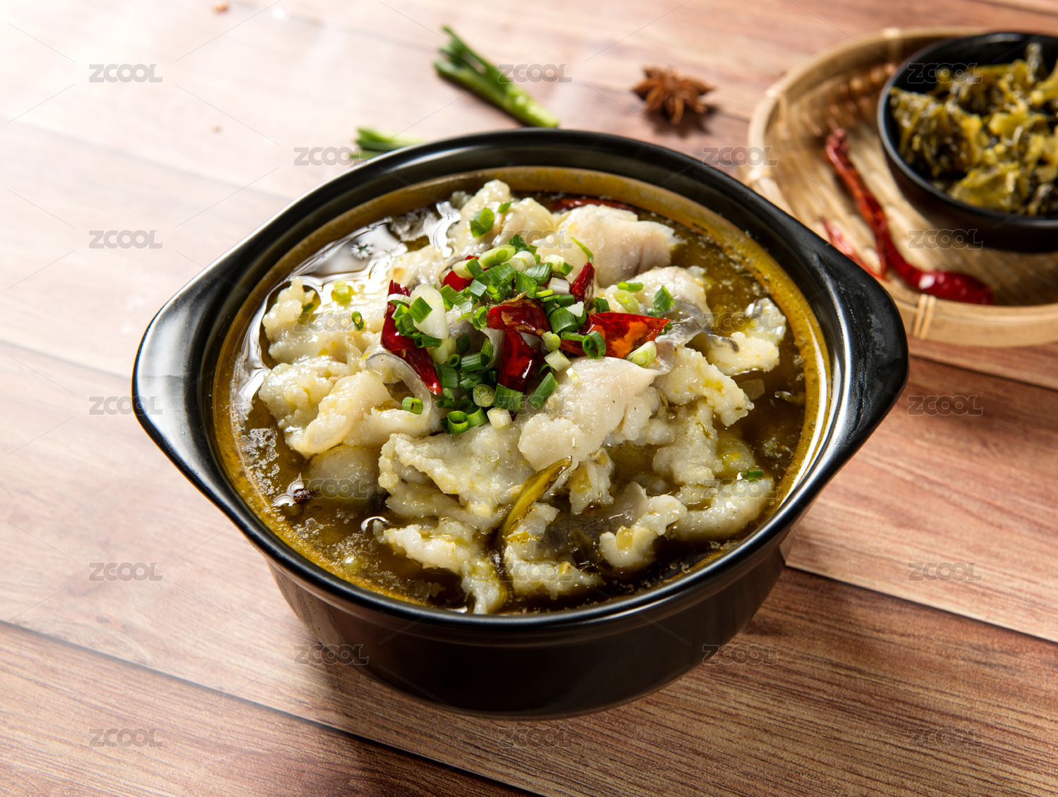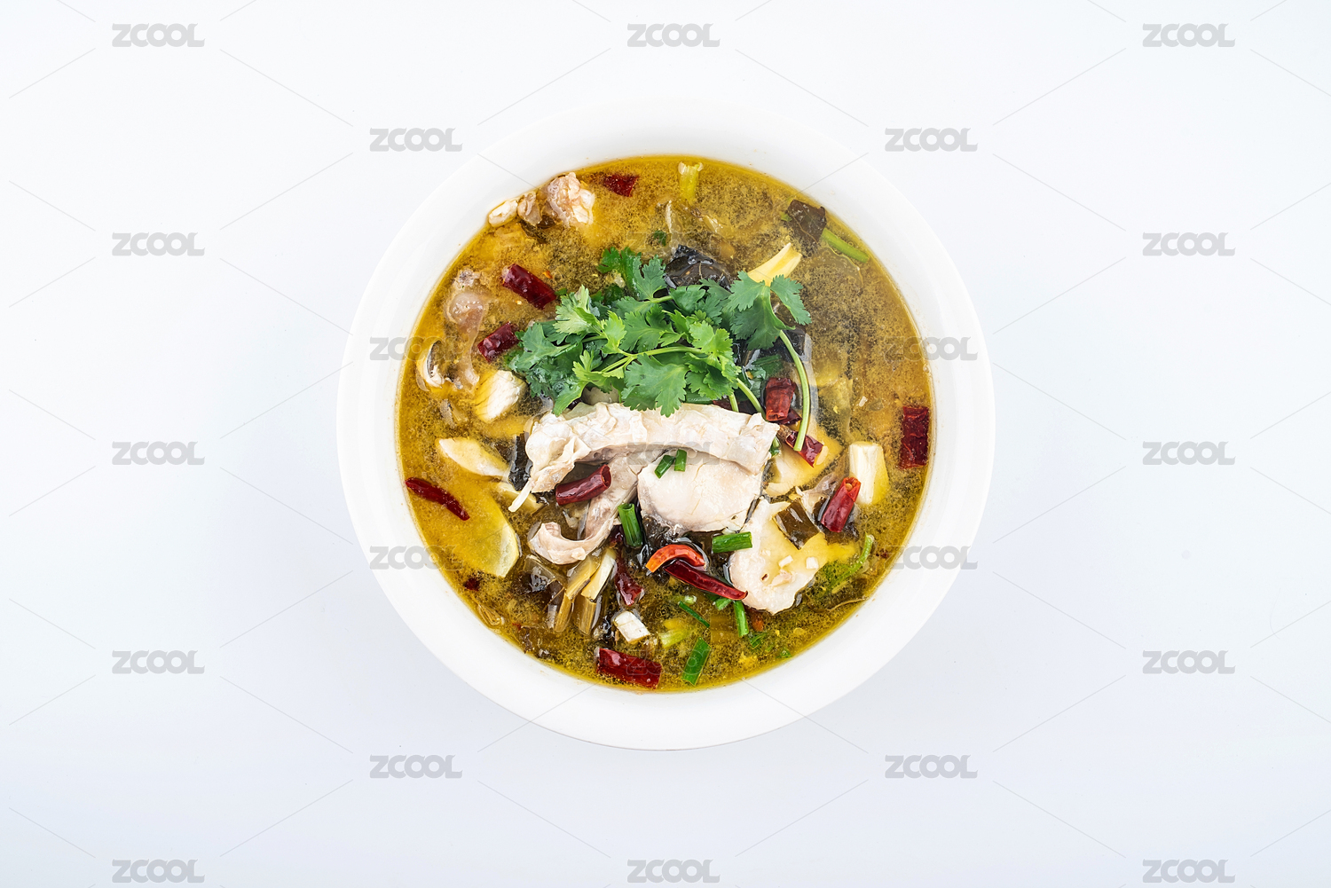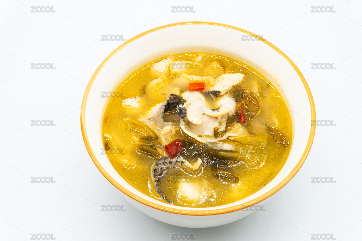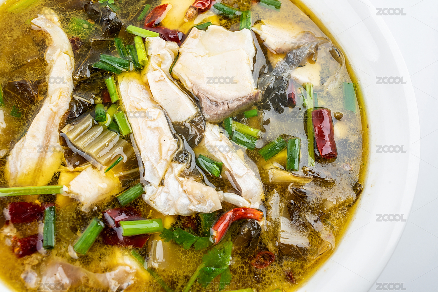 中國重慶菜金黃色酸辣可口的酸菜魚特寫