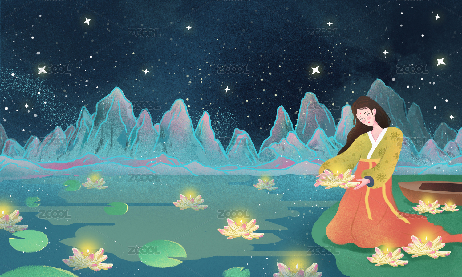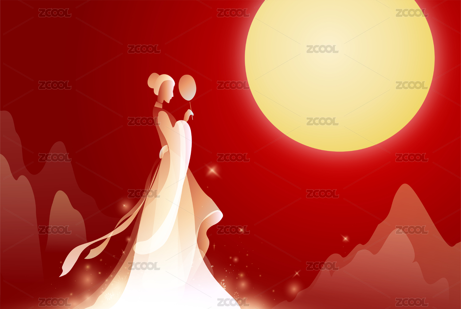 中國風(fēng)中秋佳節(jié)嫦娥仙女思念故人插畫