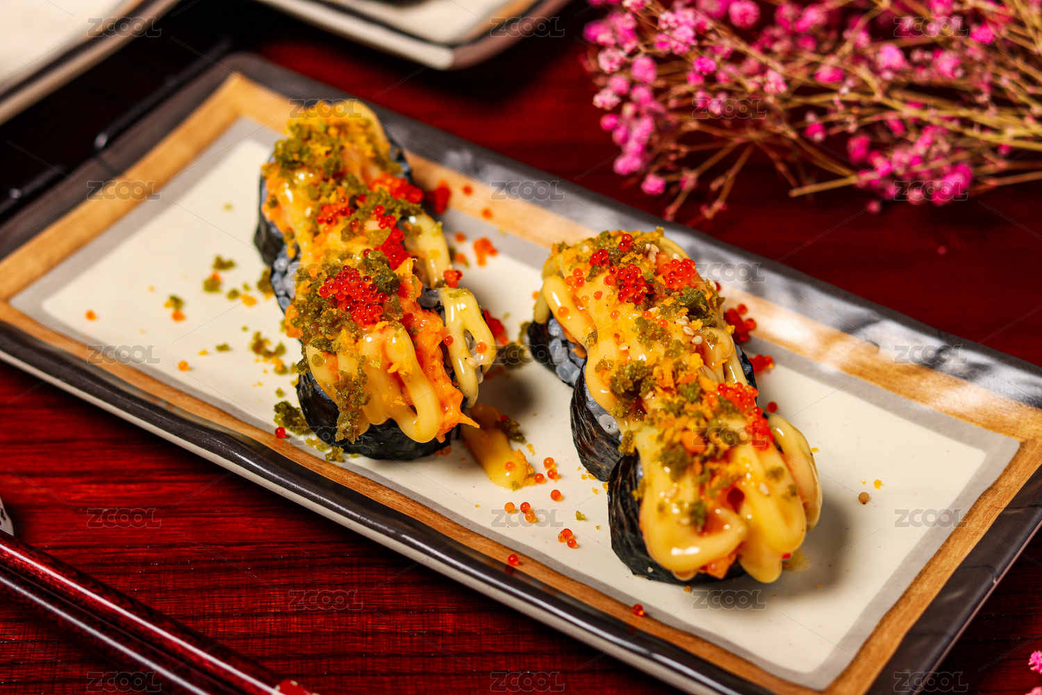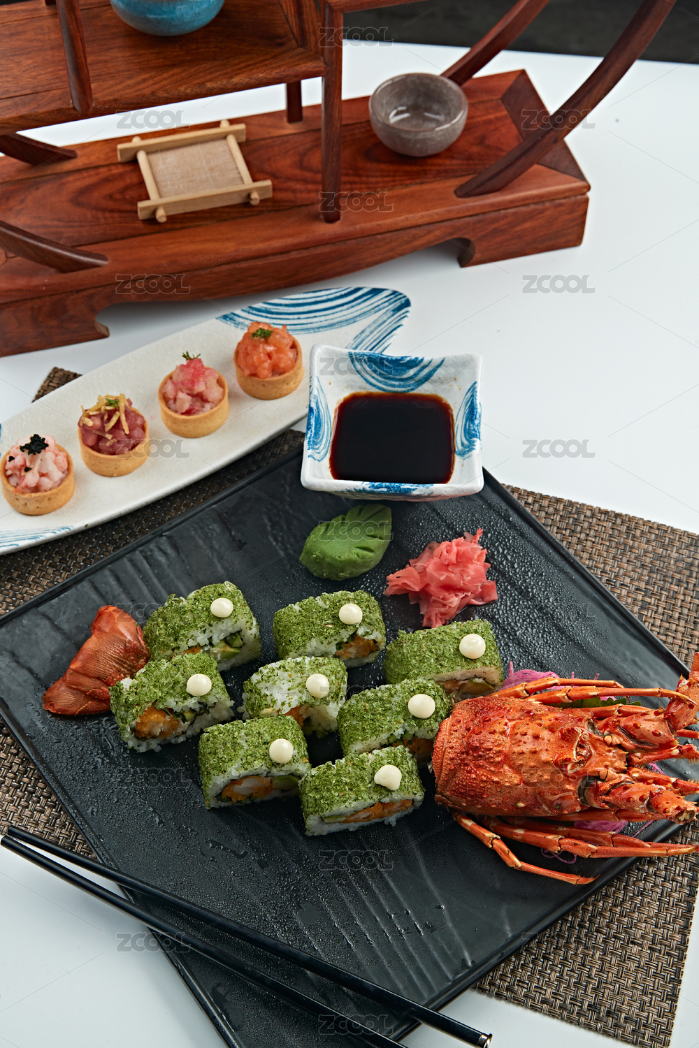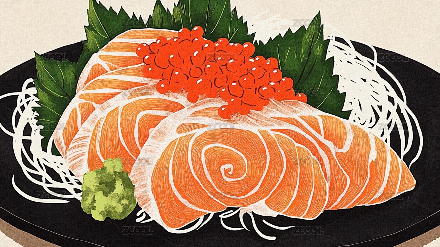 水彩手繪海鮮食材 小龍蝦刀魚三文魚壽司