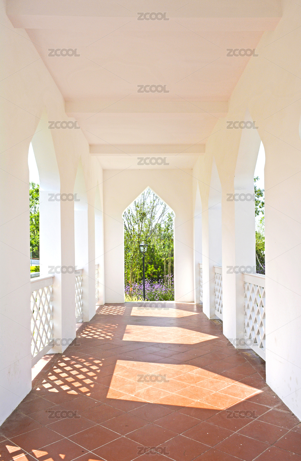 白色墻壁葡萄牙風(fēng)格建筑走廊長廊