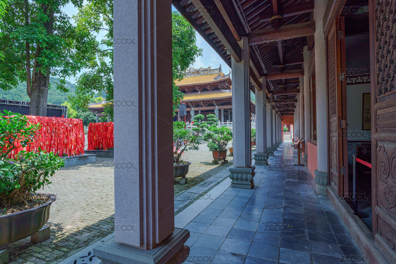 南寧孔廟博物館中式傳統(tǒng)古建筑長廊走廊