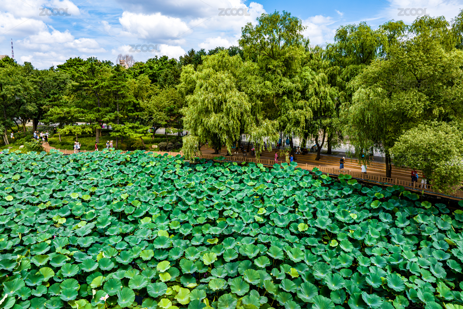 南寧南湖公園湖泊棧道綠色草地與城市景觀