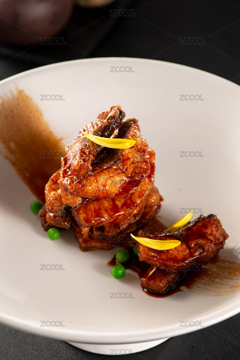 黑背景傳統(tǒng)本幫菜一盤上海熏魚