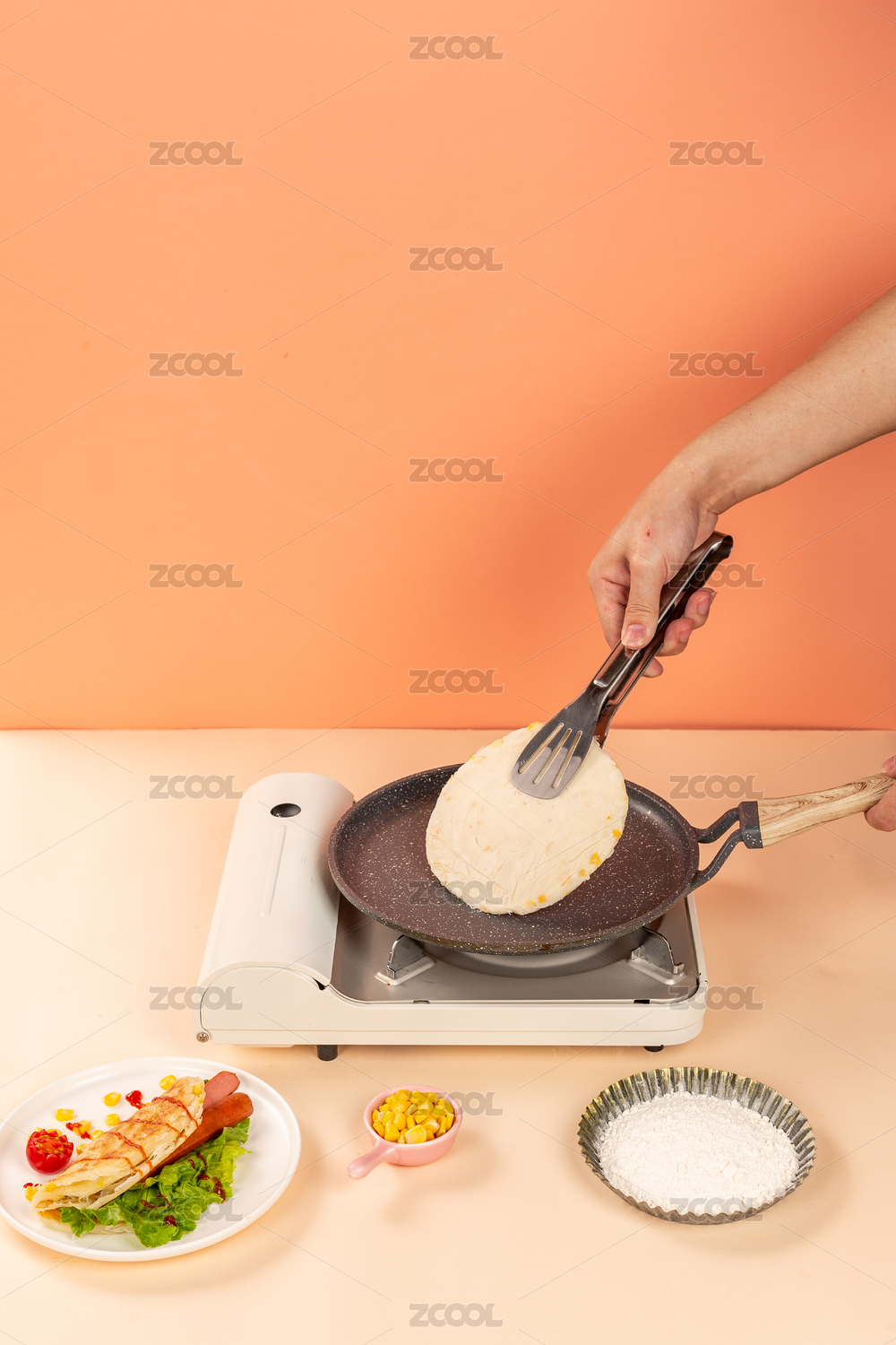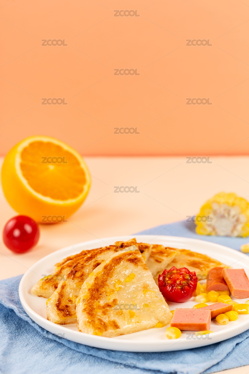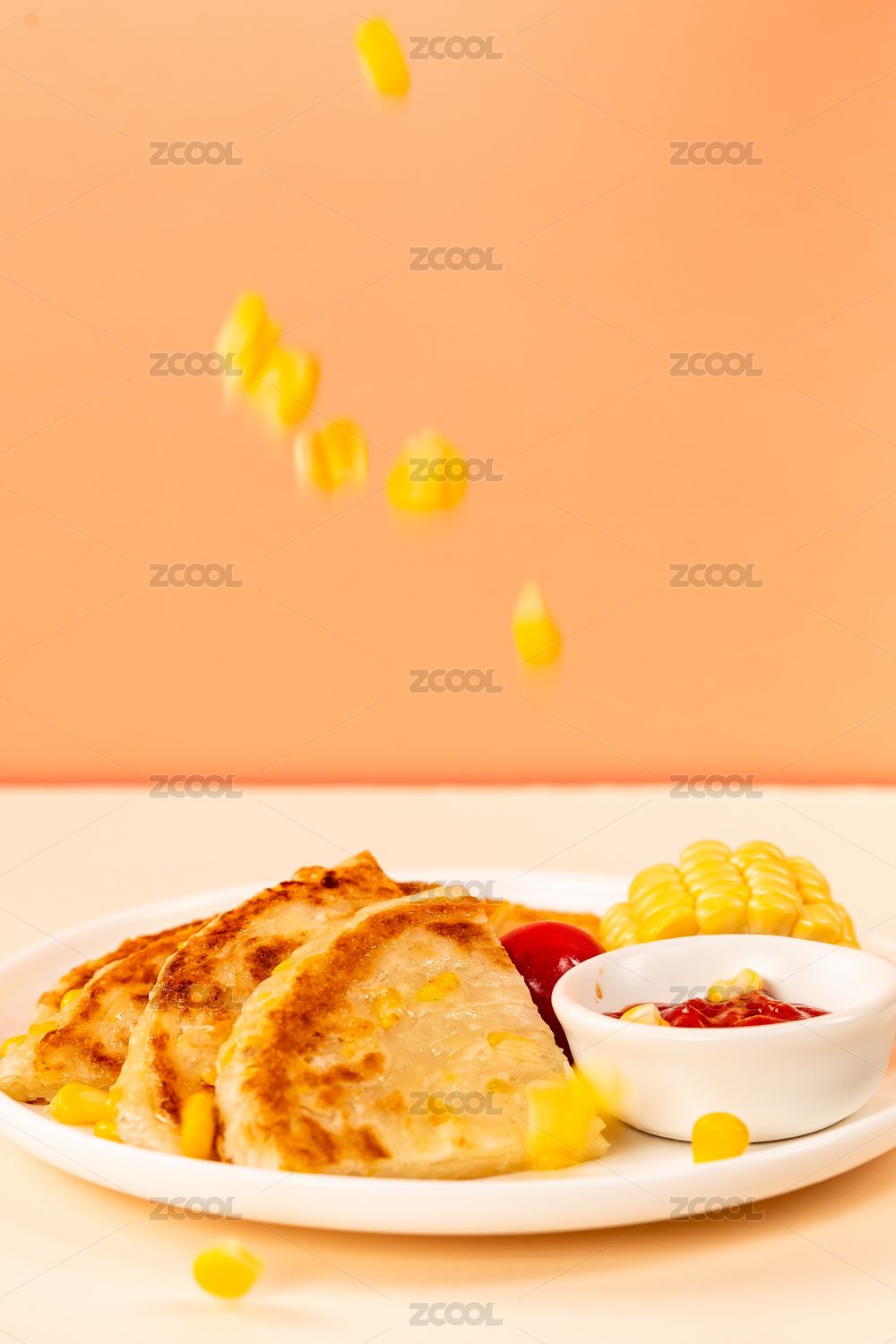 白色背景上滿滿一盤美味的玉米蔥油餅