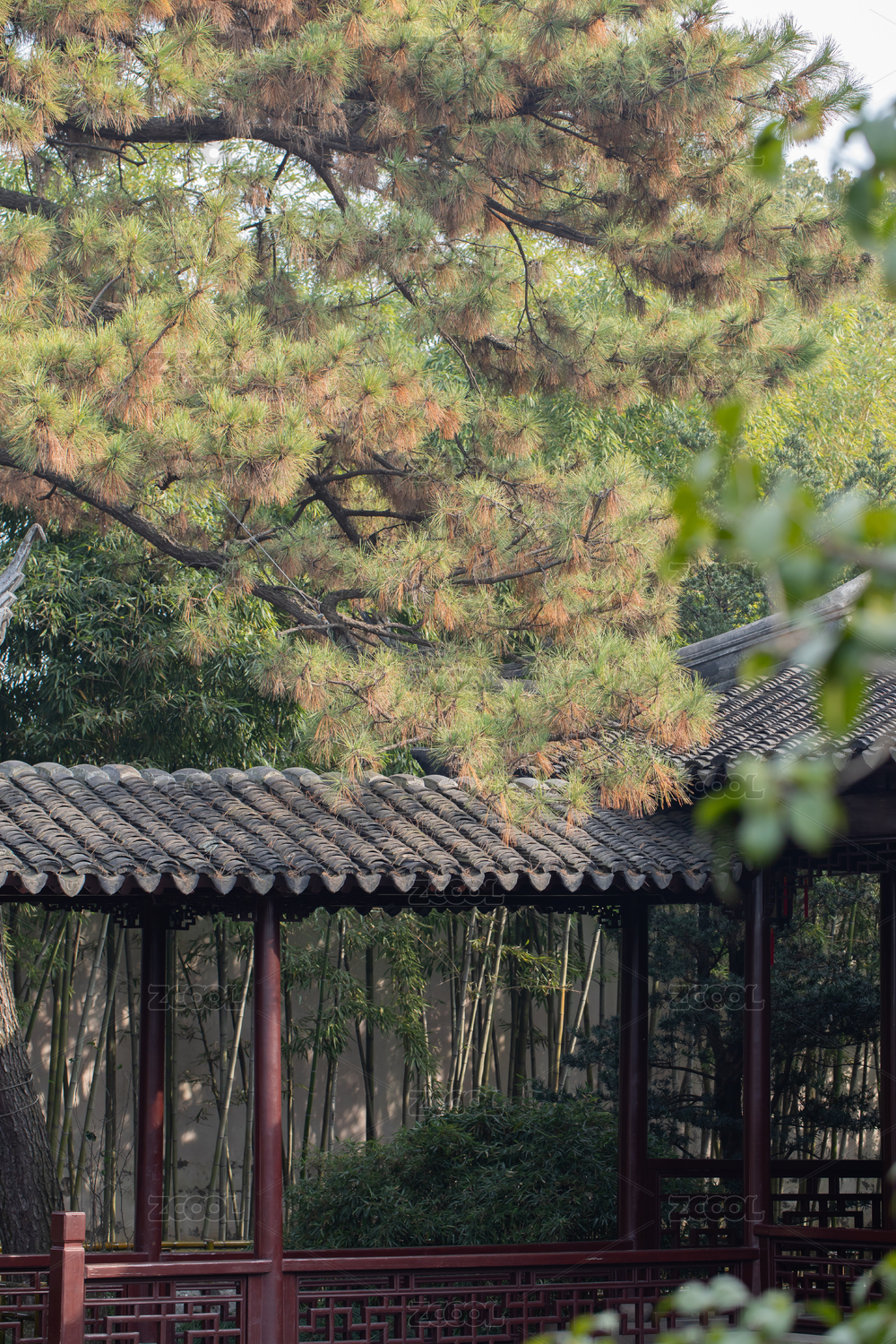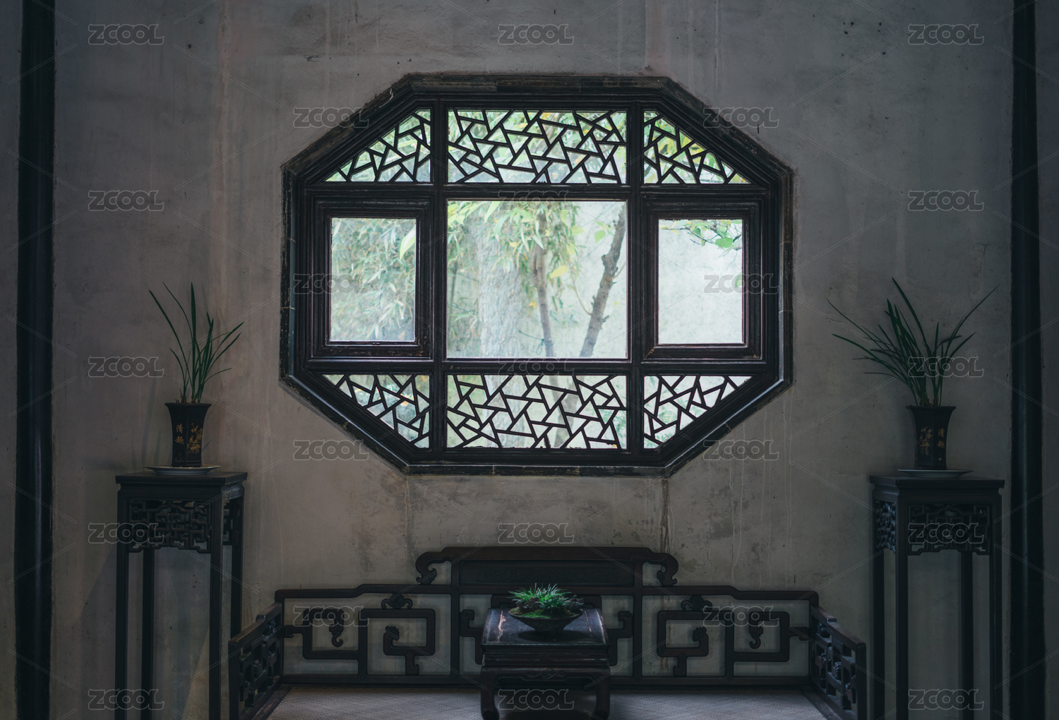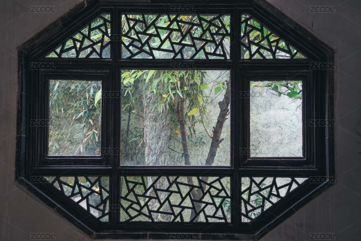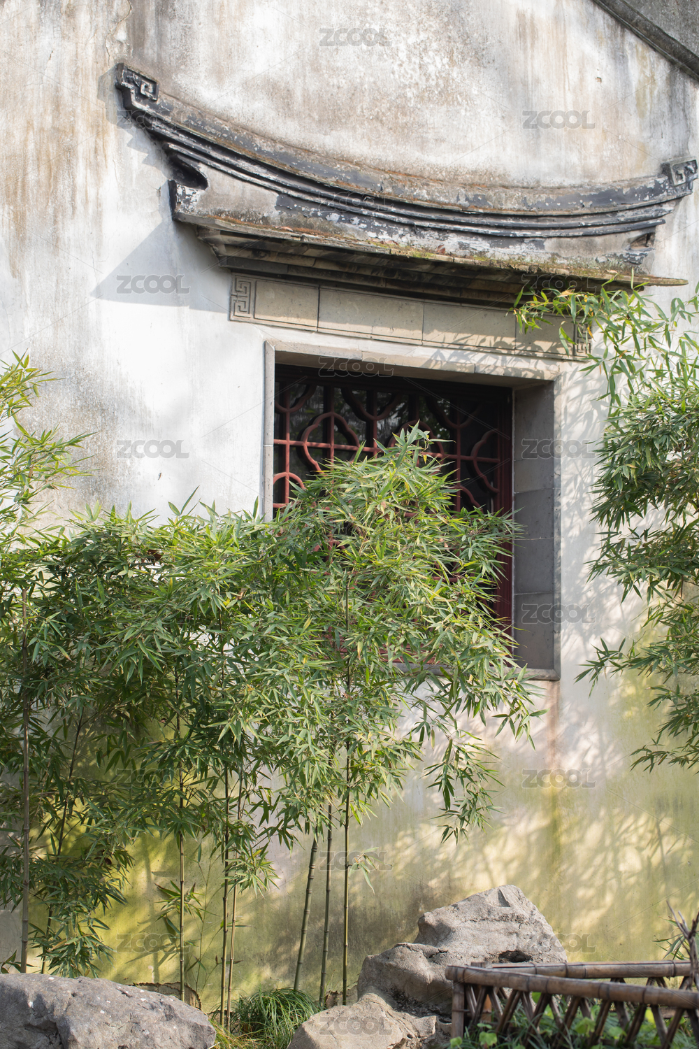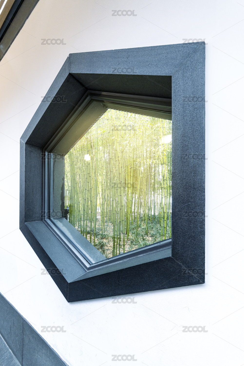 江蘇省蘇州市拙政園,蘇式園林窗戶里的竹林