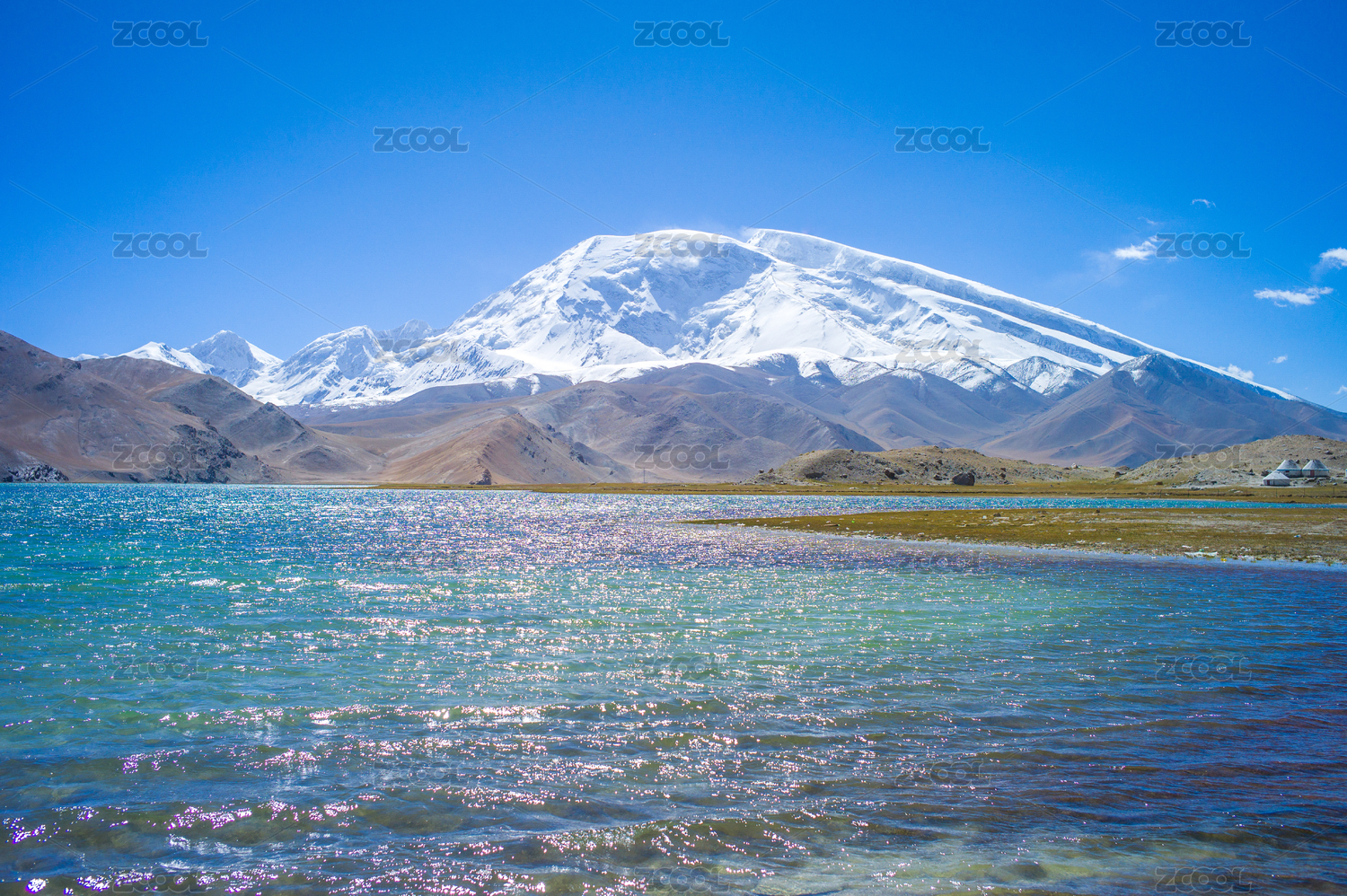 中國(guó)新疆中巴公路卡拉庫(kù)里湖和慕士塔格峰夏季