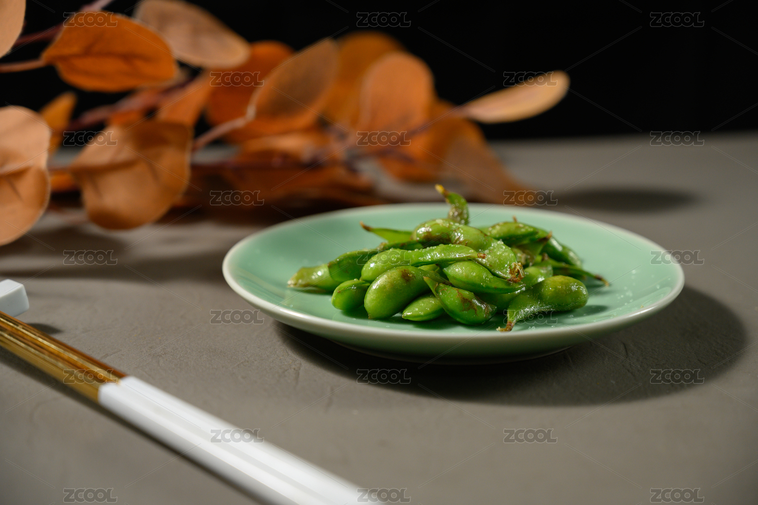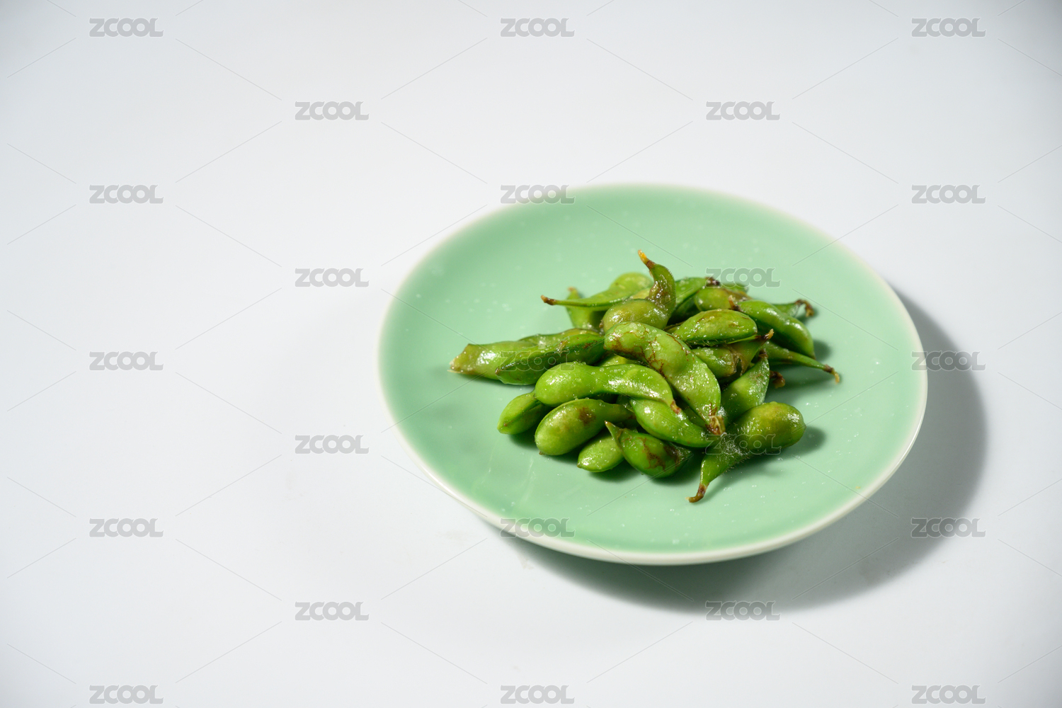 桌面上的盤子里的美味可口的鹽水毛豆