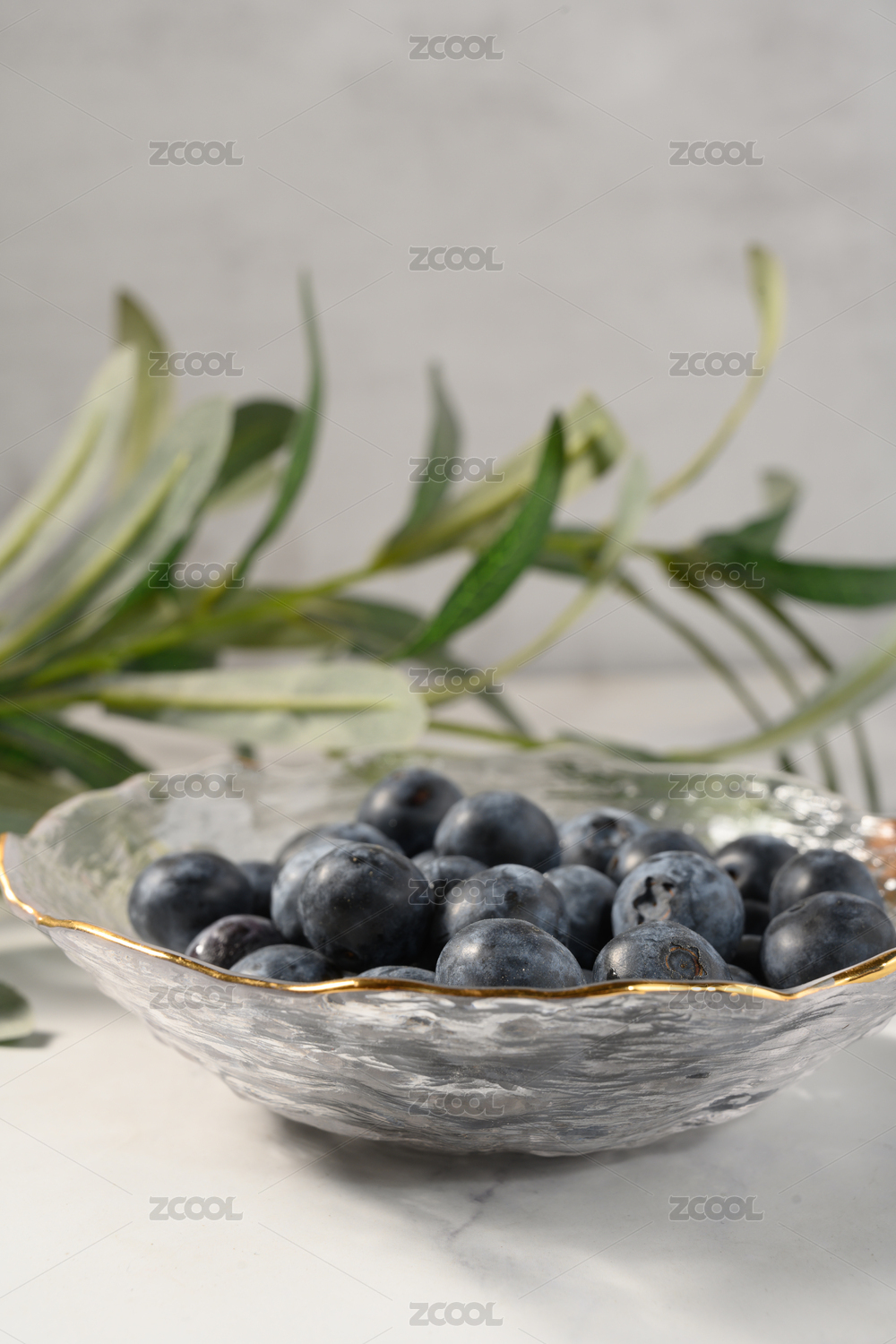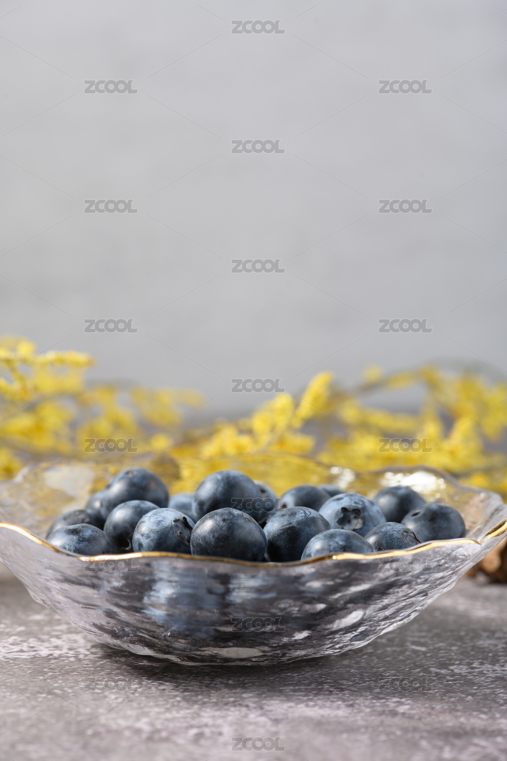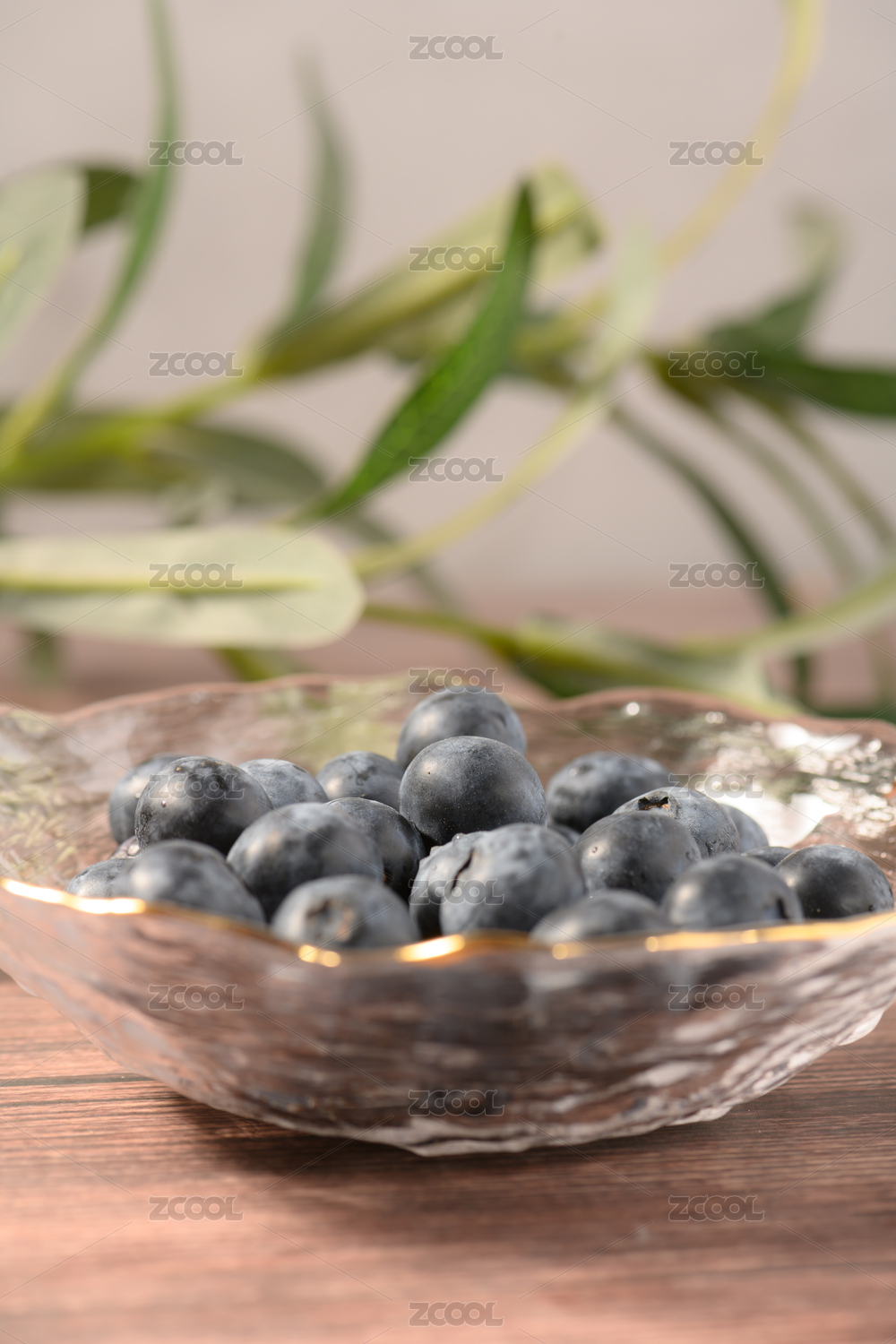 桌面上的玻璃盤子里的美味可口的藍梅