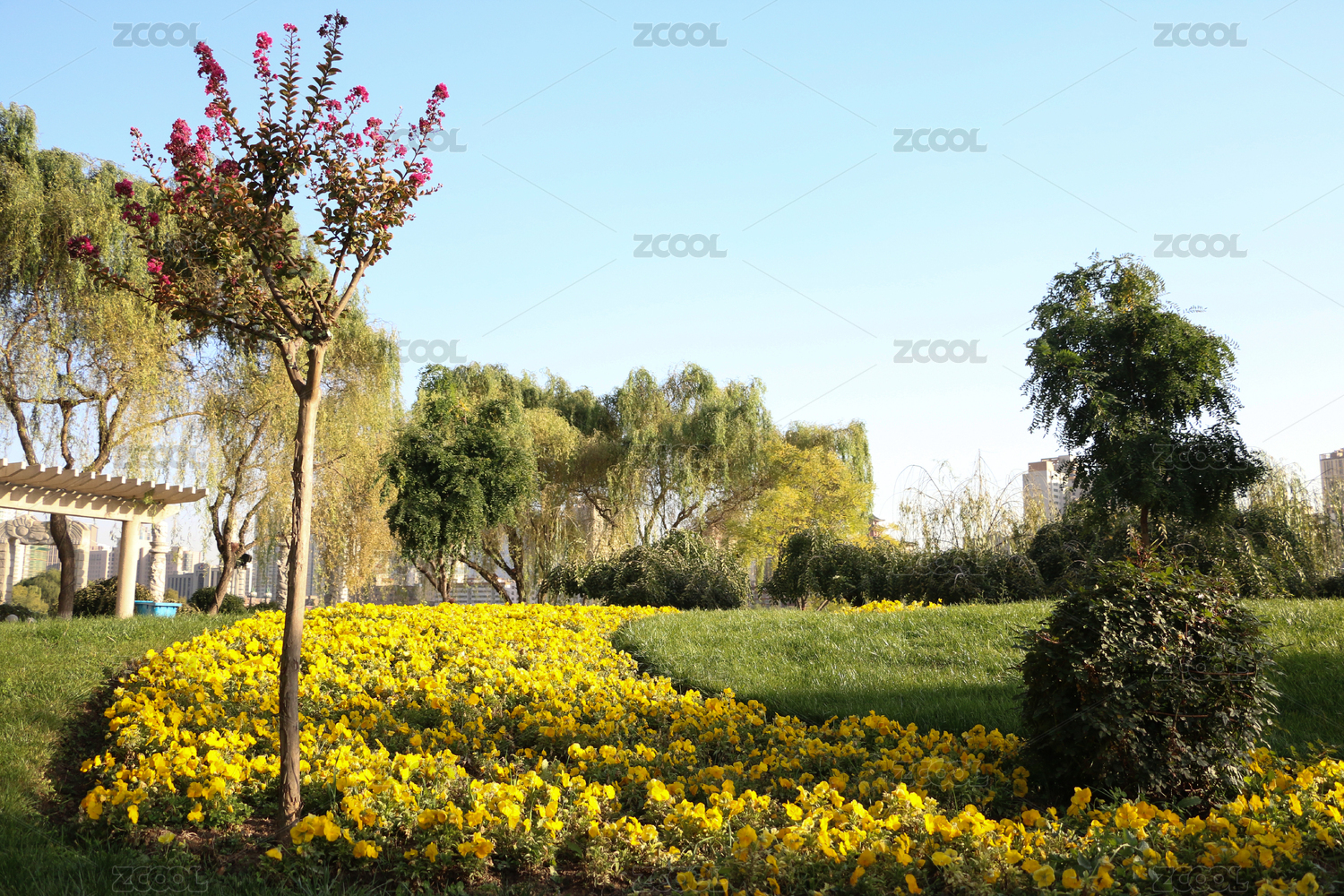 中國(guó)三門(mén)峽黃河公園河邊的花叢