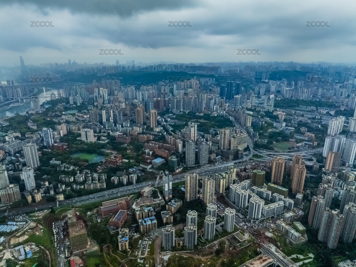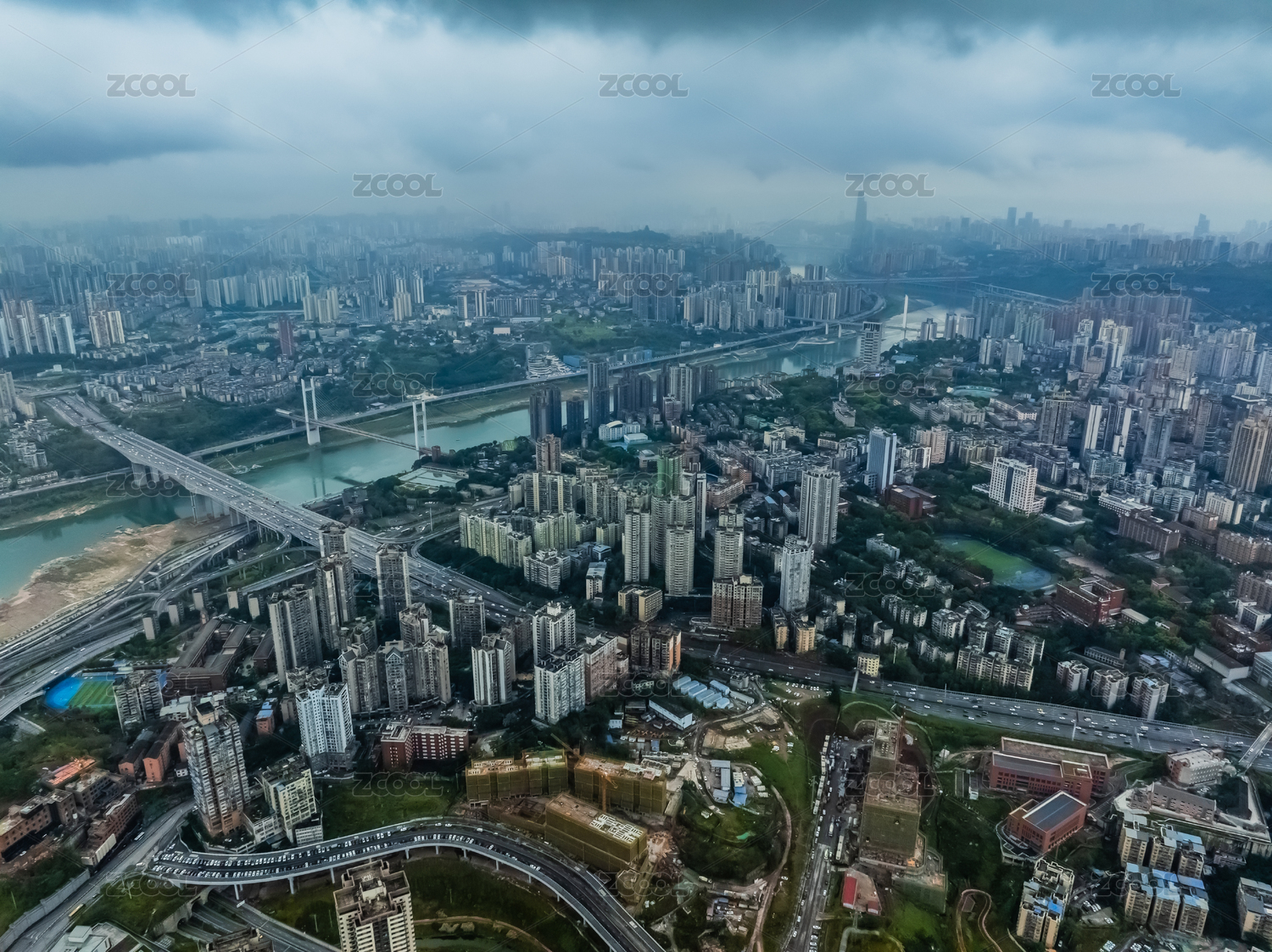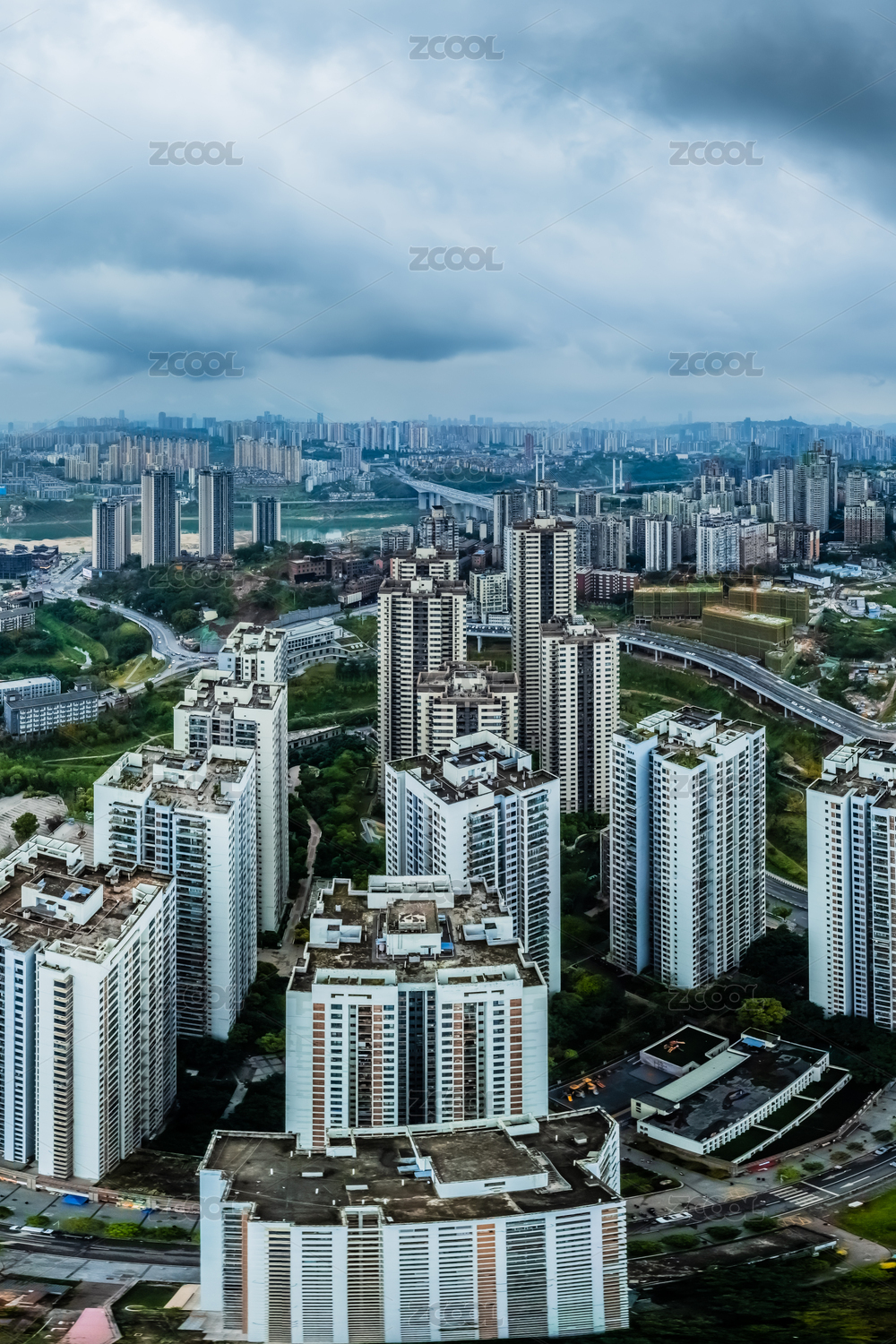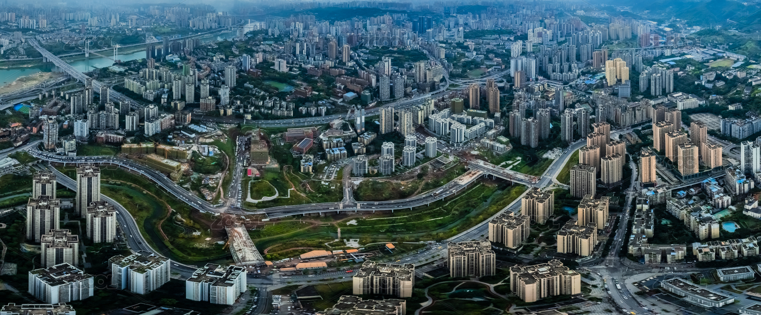 中國(guó)重慶市沙坪壩區(qū)嘉陵江外灘高樓大廈建筑