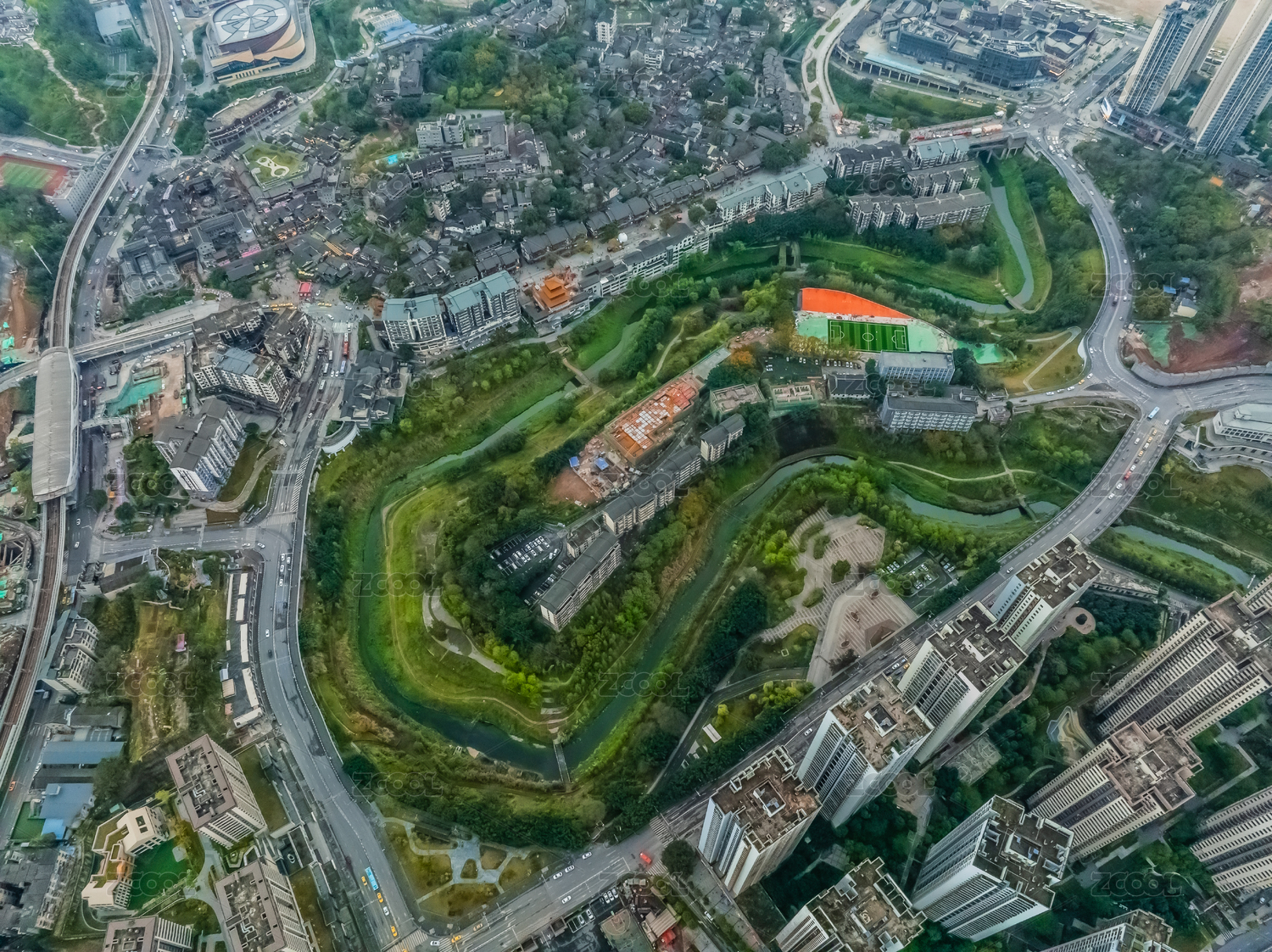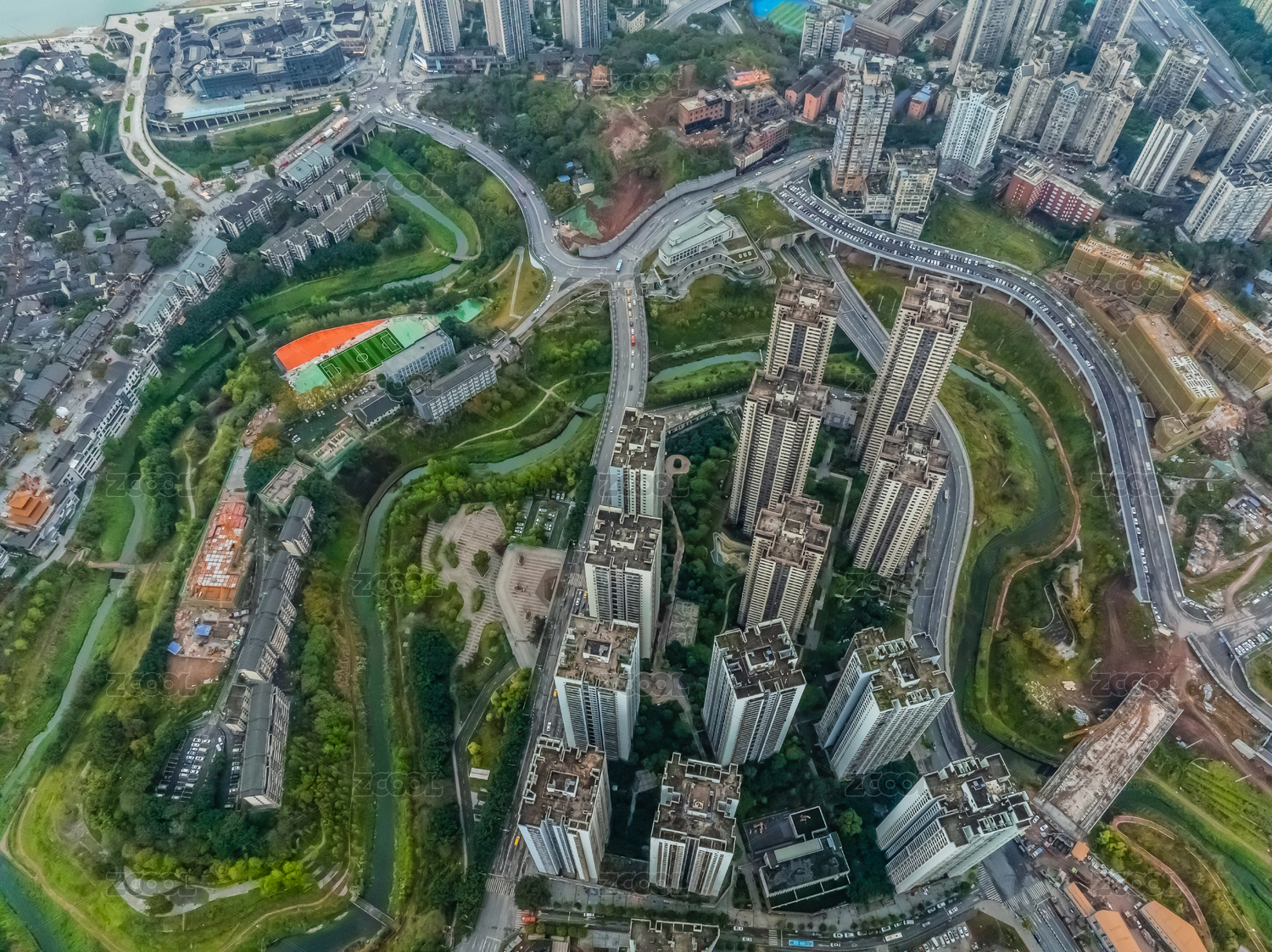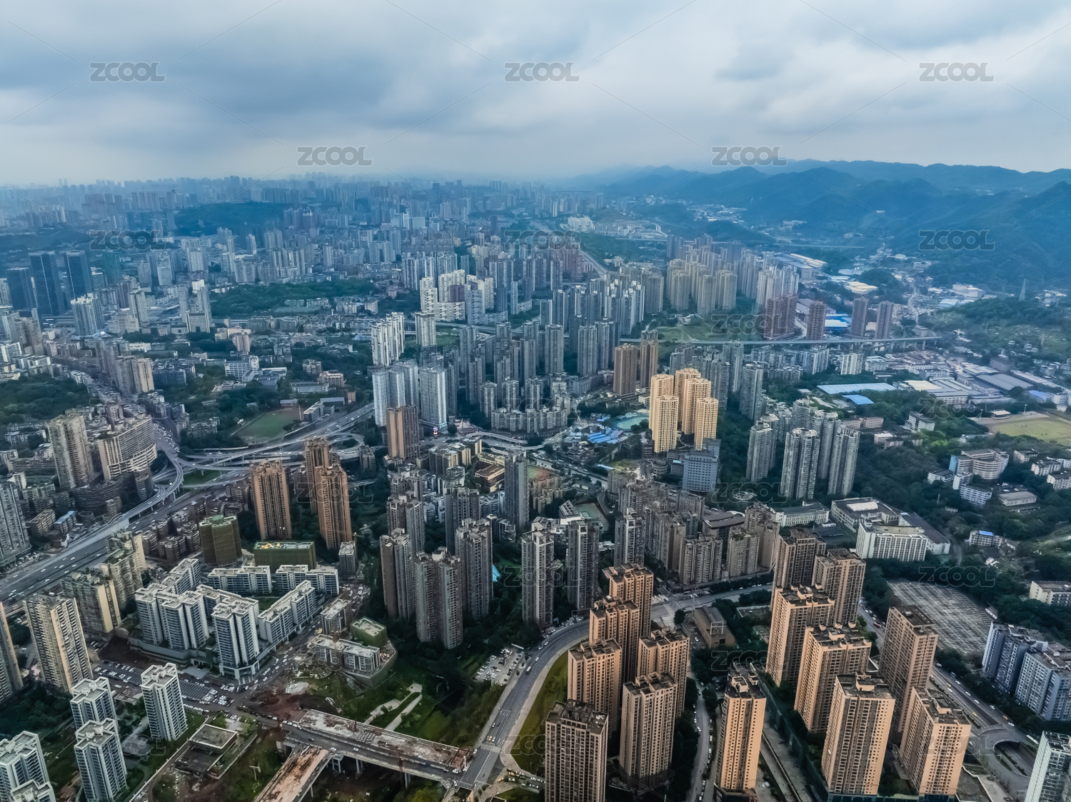 中國(guó)重慶市沙坪壩區(qū)嘉陵江外灘高樓大廈建筑
