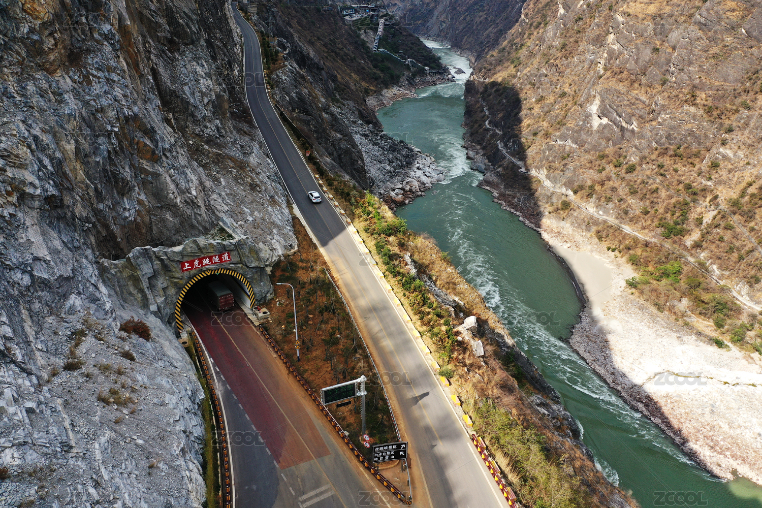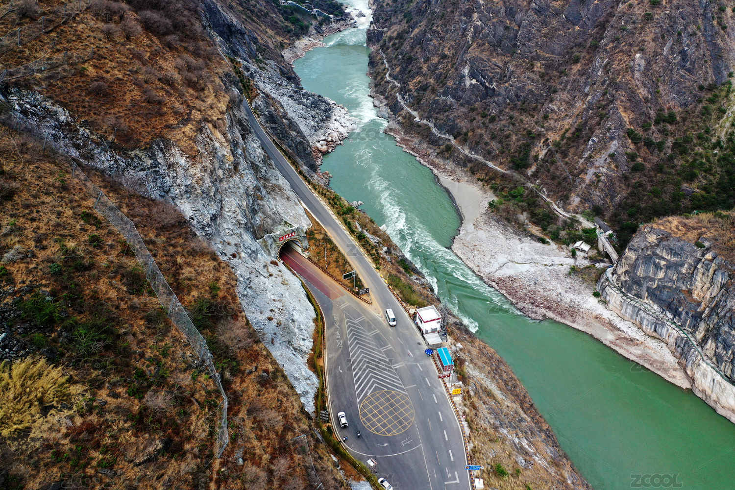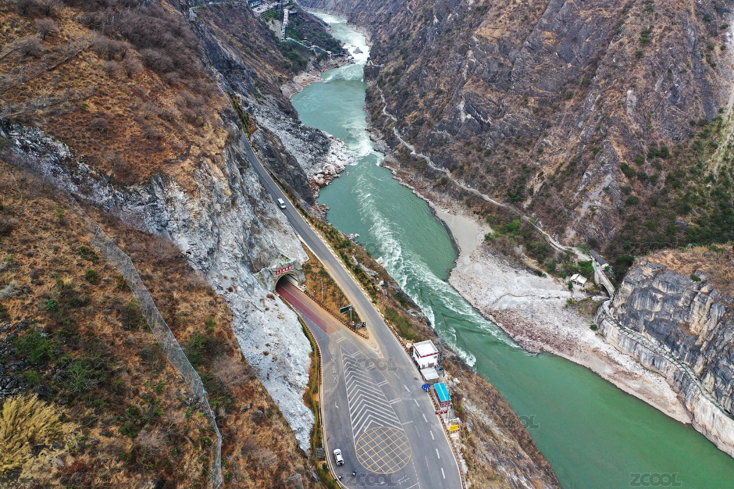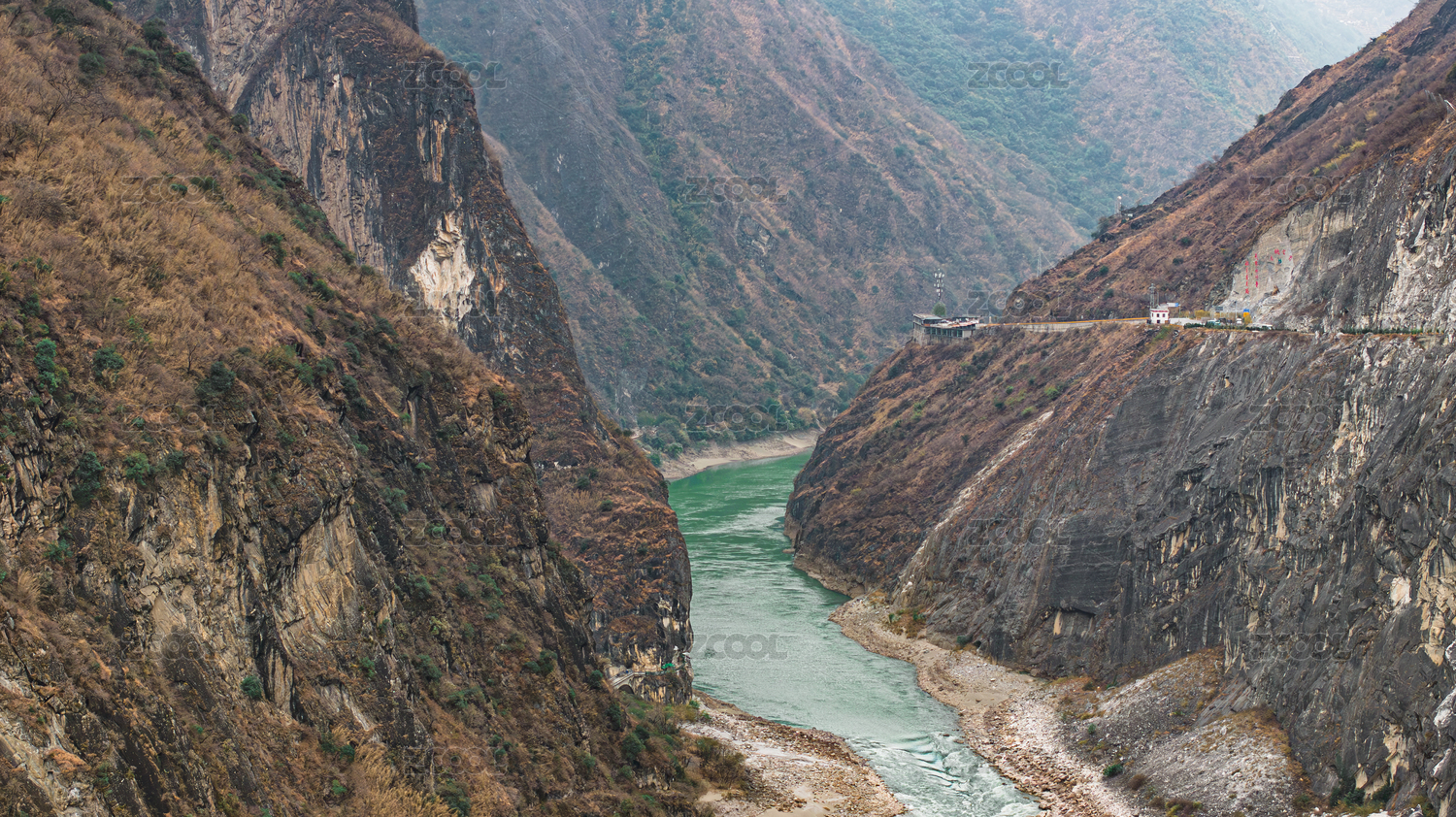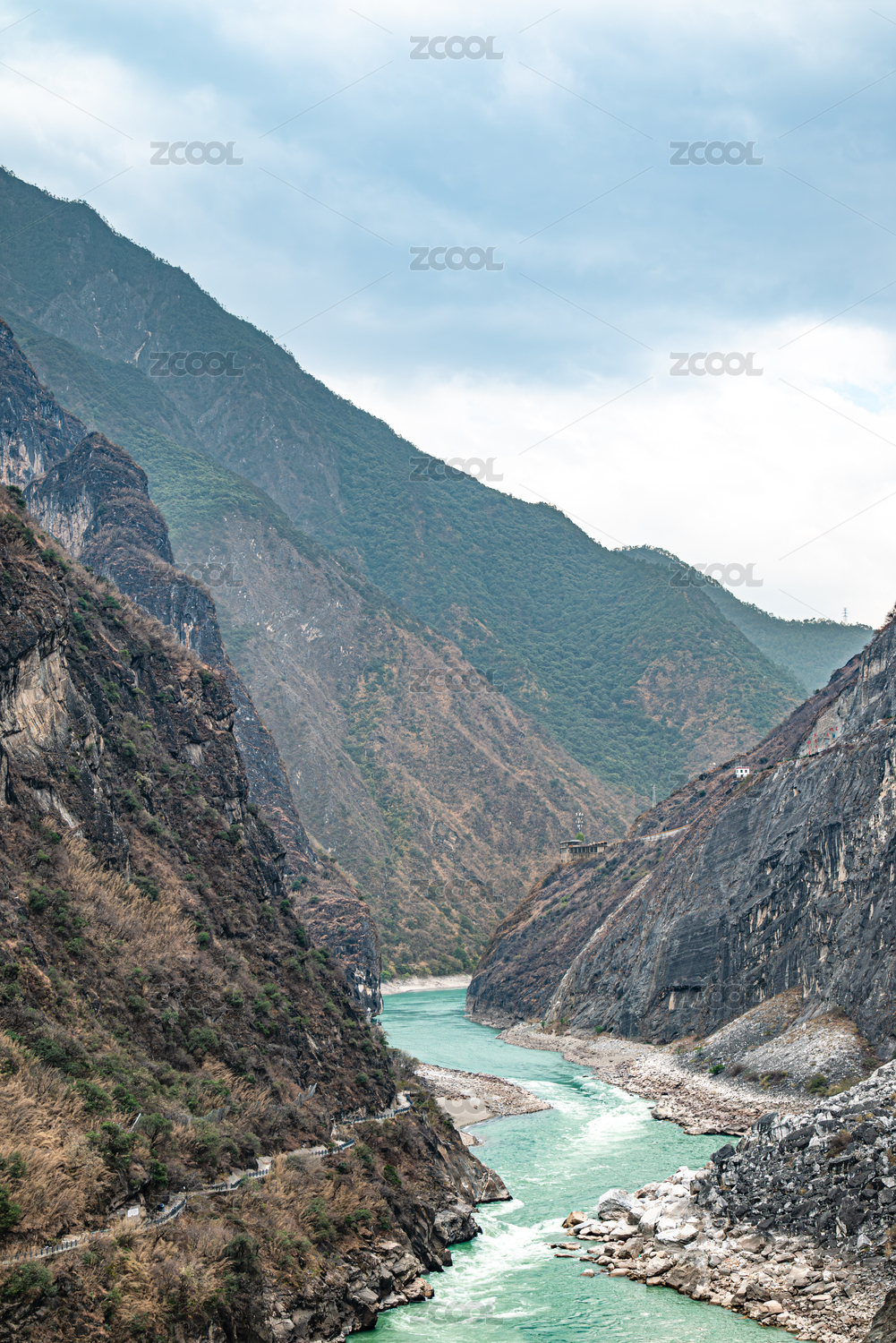 云南迪慶香格里拉虎跳峽景區(qū)中的金沙江