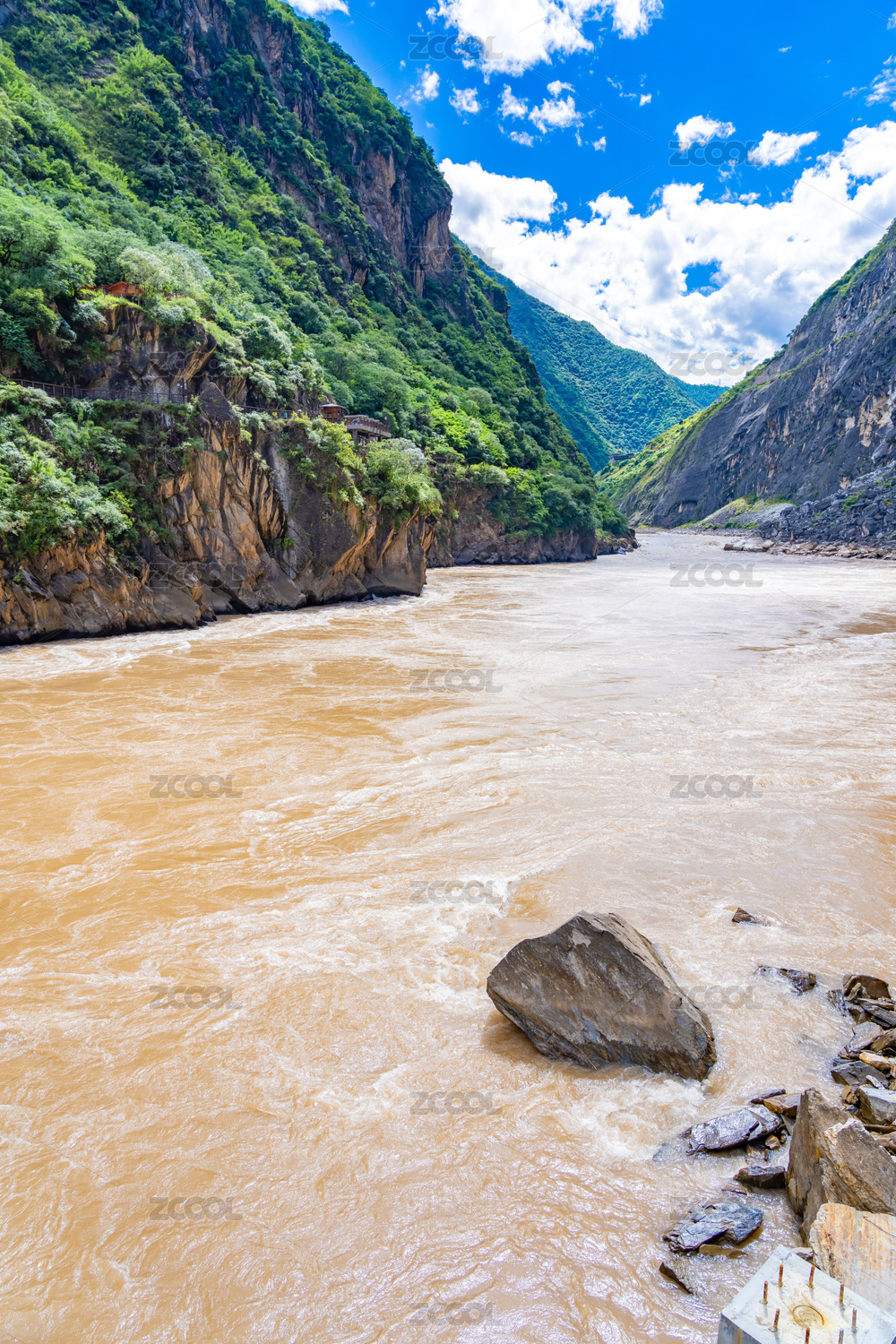云南省麗江市上虎跳峽金沙江汛期潮水