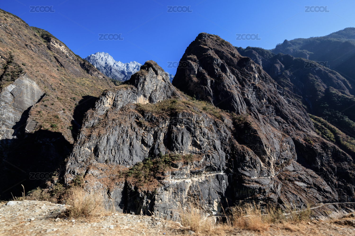 中國(guó)云南省虎跳峽高路徒步視角的上虎跳峽