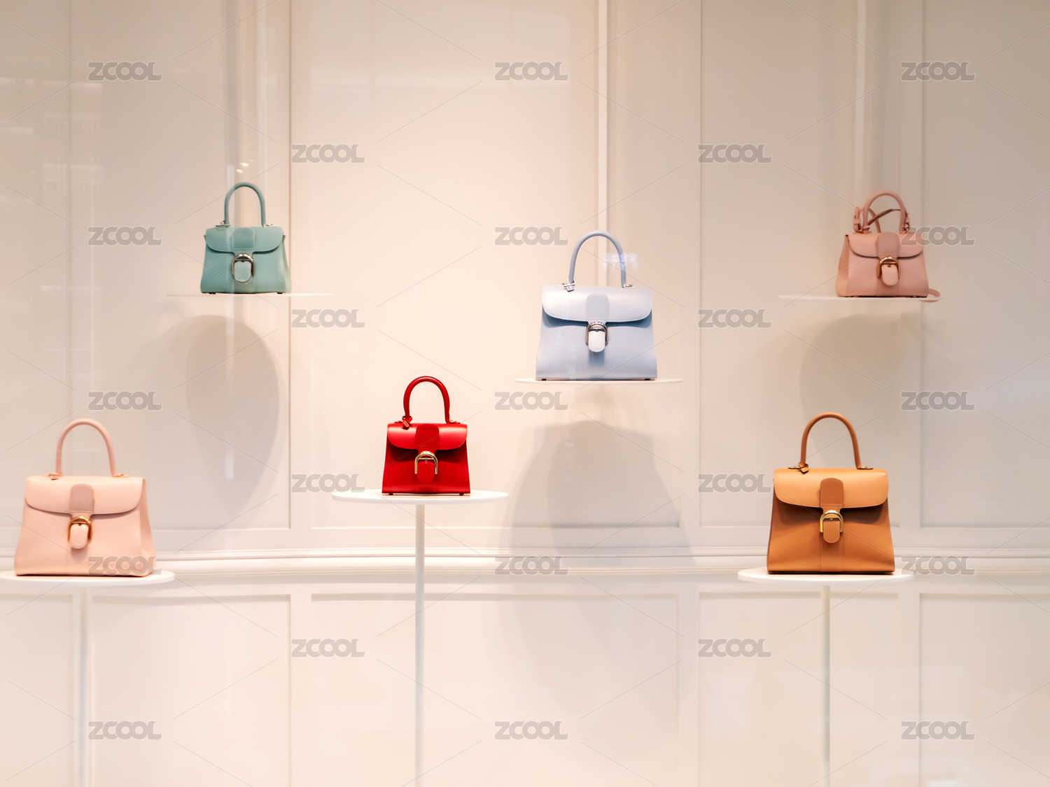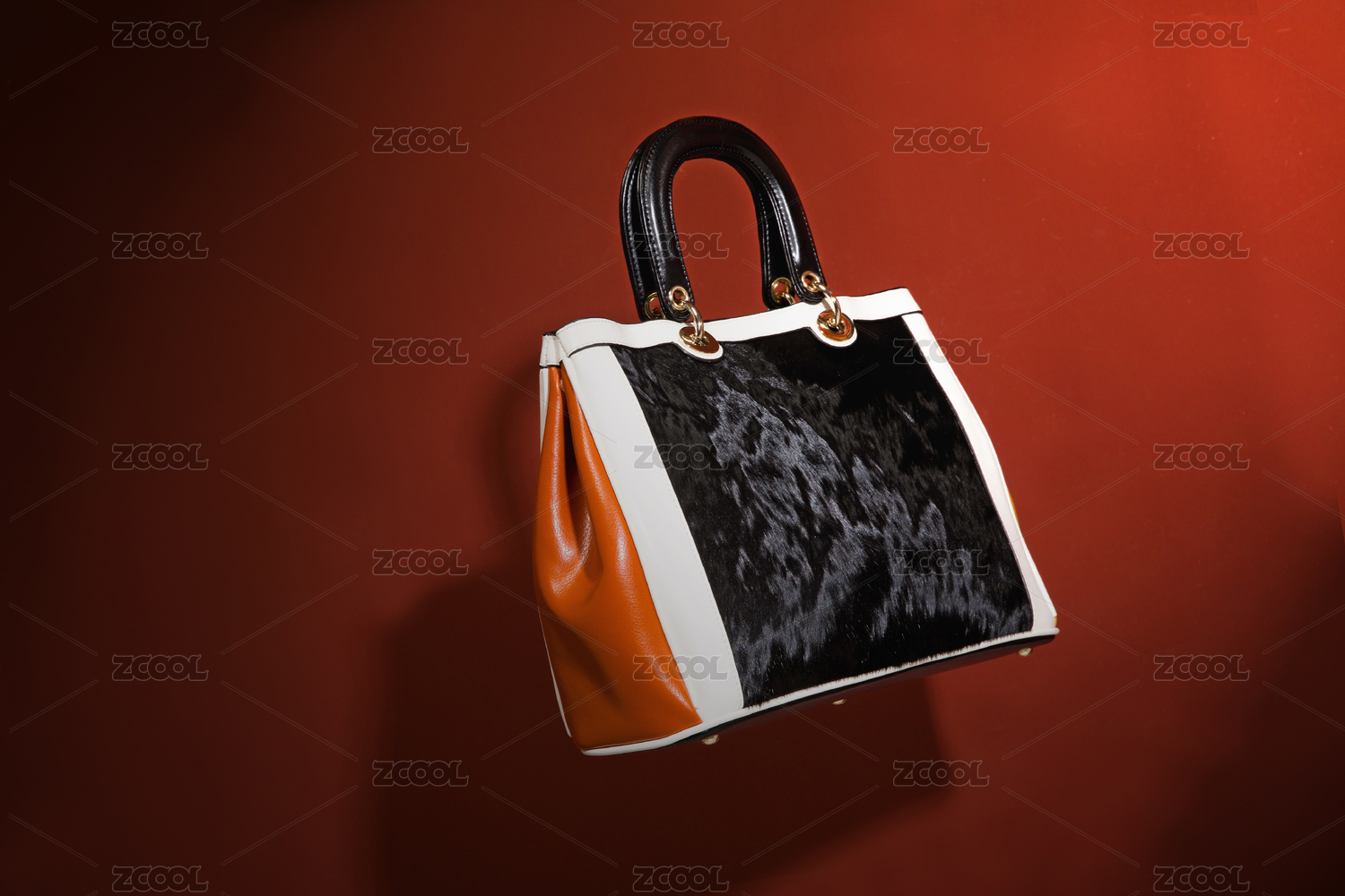 紅色背景前懸浮的手提包
